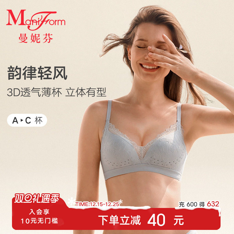 曼妮芬蜻蜓Bra舒适无钢圈女性感蕾丝文胸透气洞洞杯内衣20812391