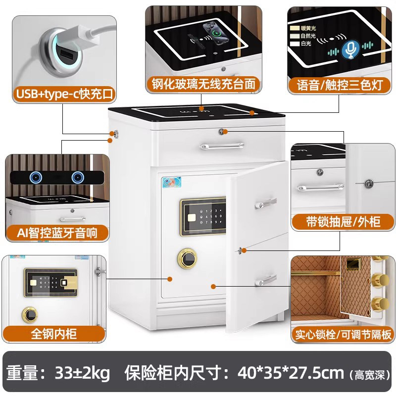 智能床头柜 隐藏防盗保险柜 无线充电触摸灯