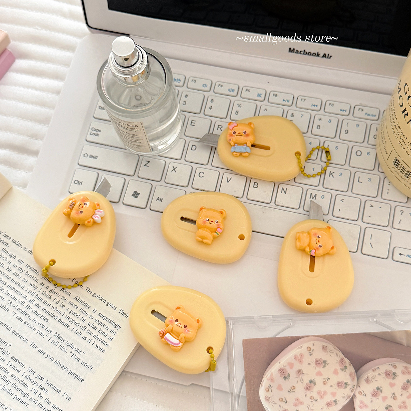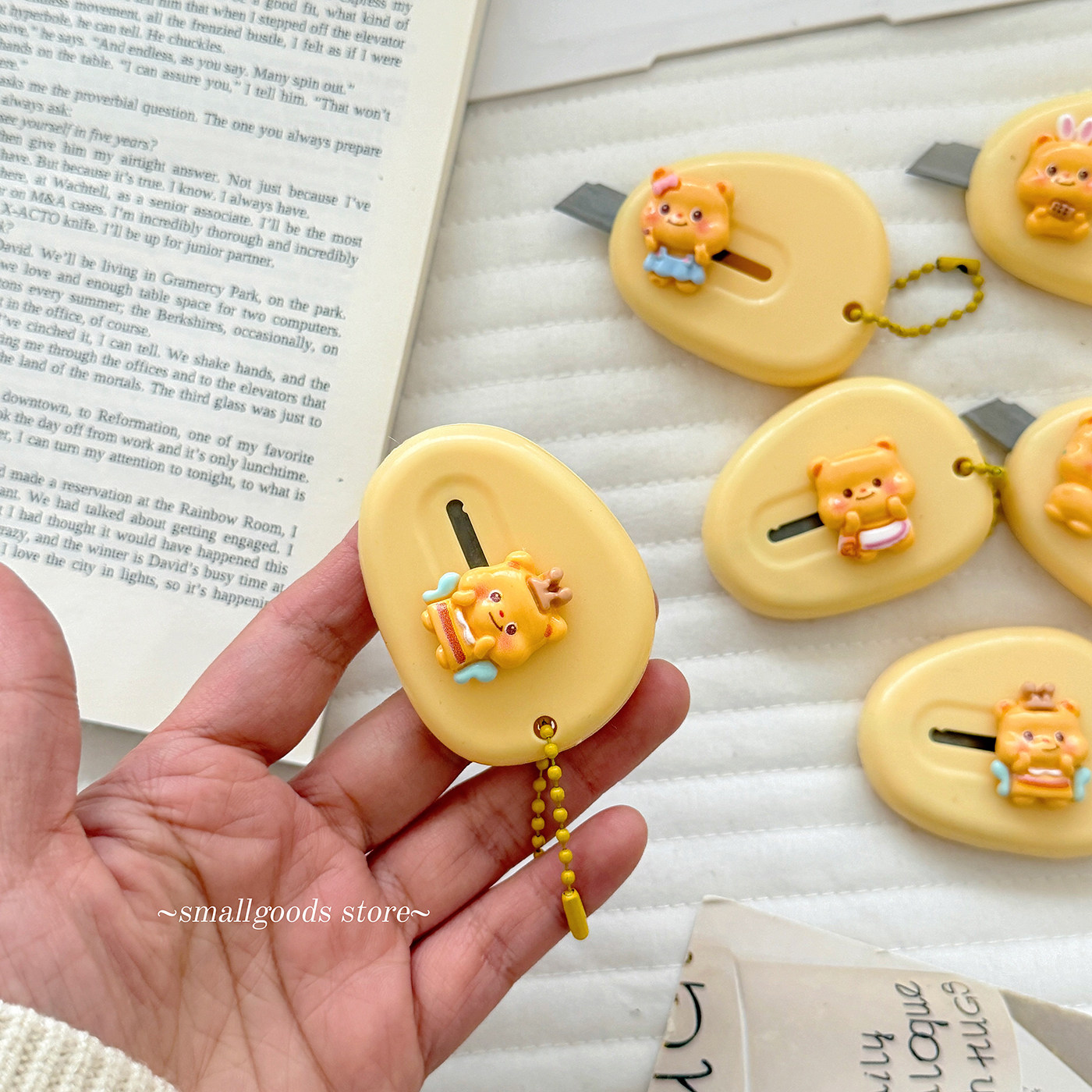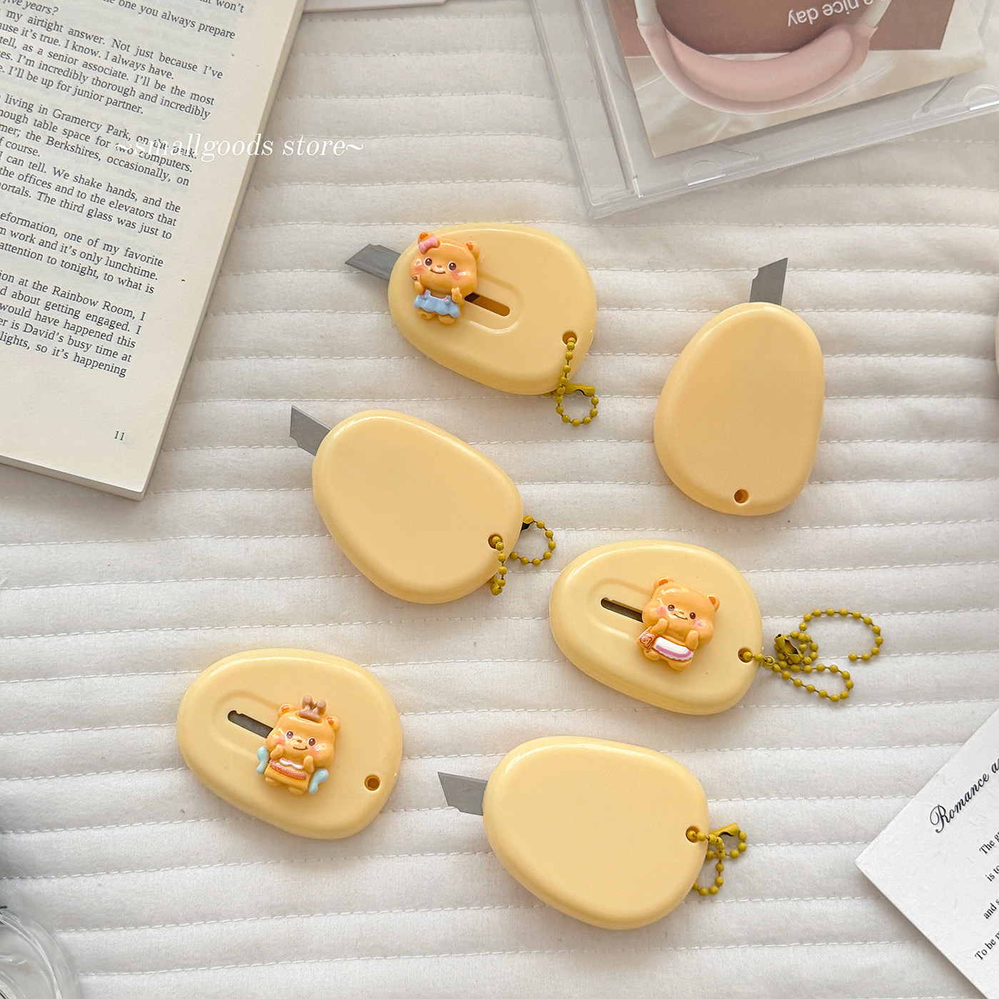 卡通创意黄油小熊开箱刀伸缩拆快递神器小刀ins可挂钥匙小刀快递