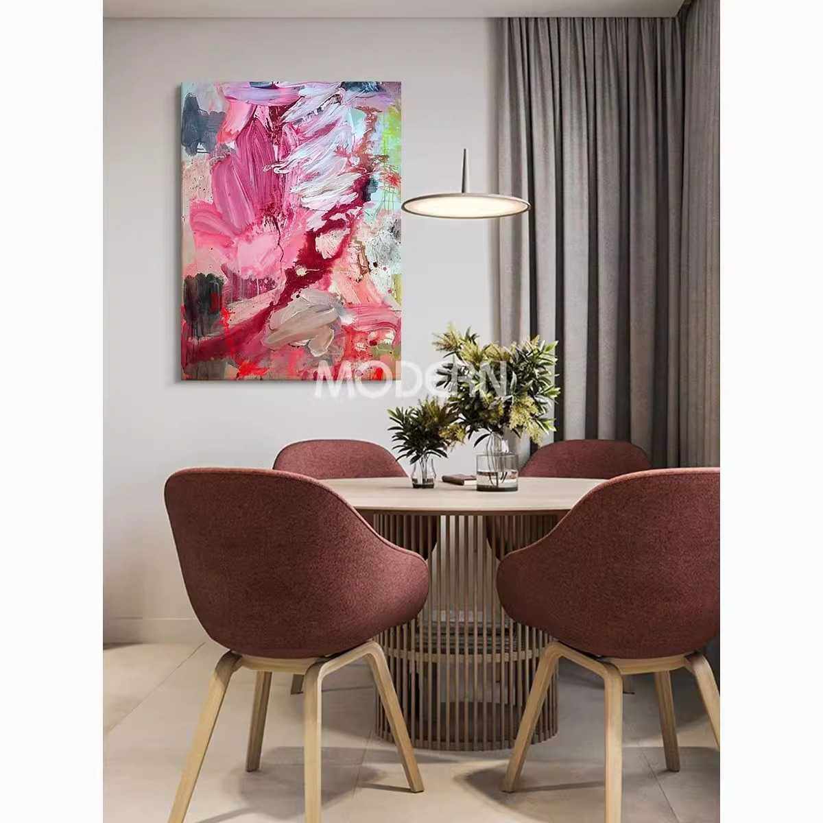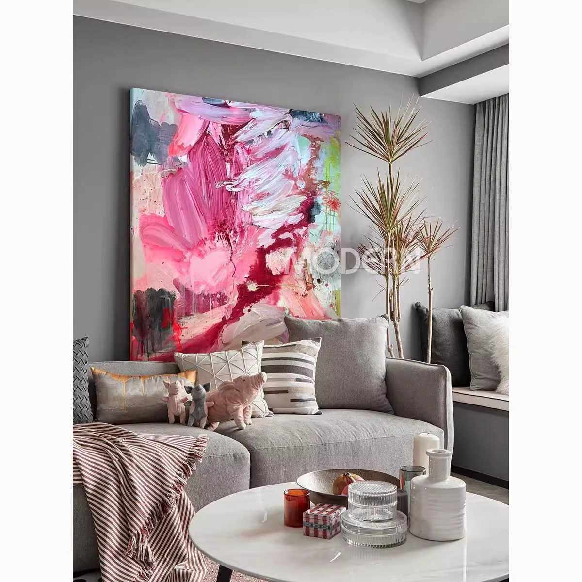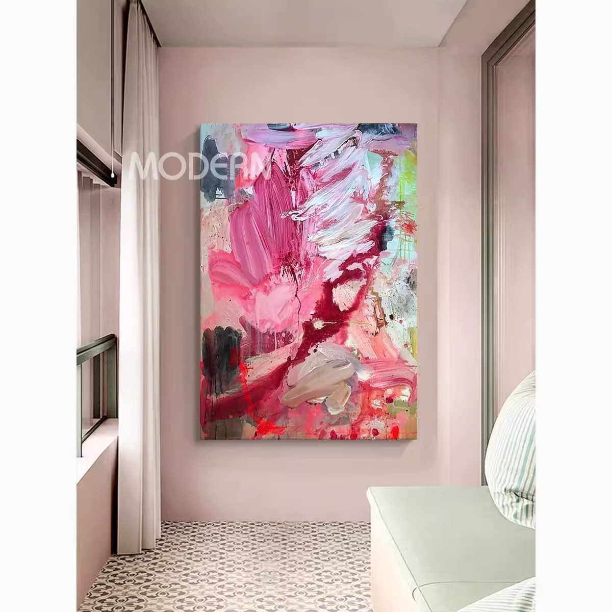 无框画实木内框现代简约抽象挂画客厅大幅装饰画玄关卧室粉色壁画
