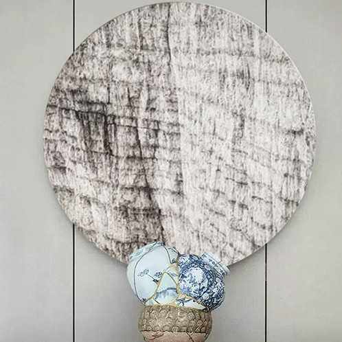 无框圆形手绘肌理新中式玄关装饰画餐厅书房客厅酒店样板抽象挂画