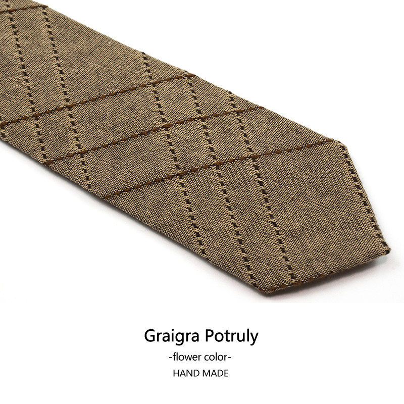 领带男咖色格子条纹英伦高档酒红色棉麻衬衫结婚领结口袋巾套装