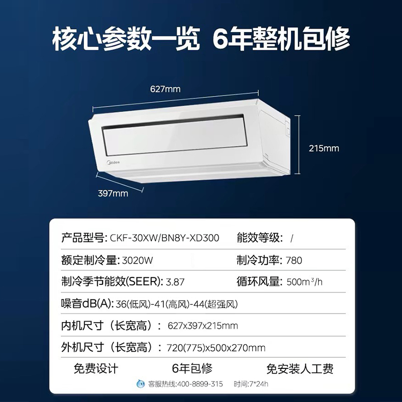 美的小凉方厨房空调专用吸顶式小1.5匹家用制冷极地白XD300