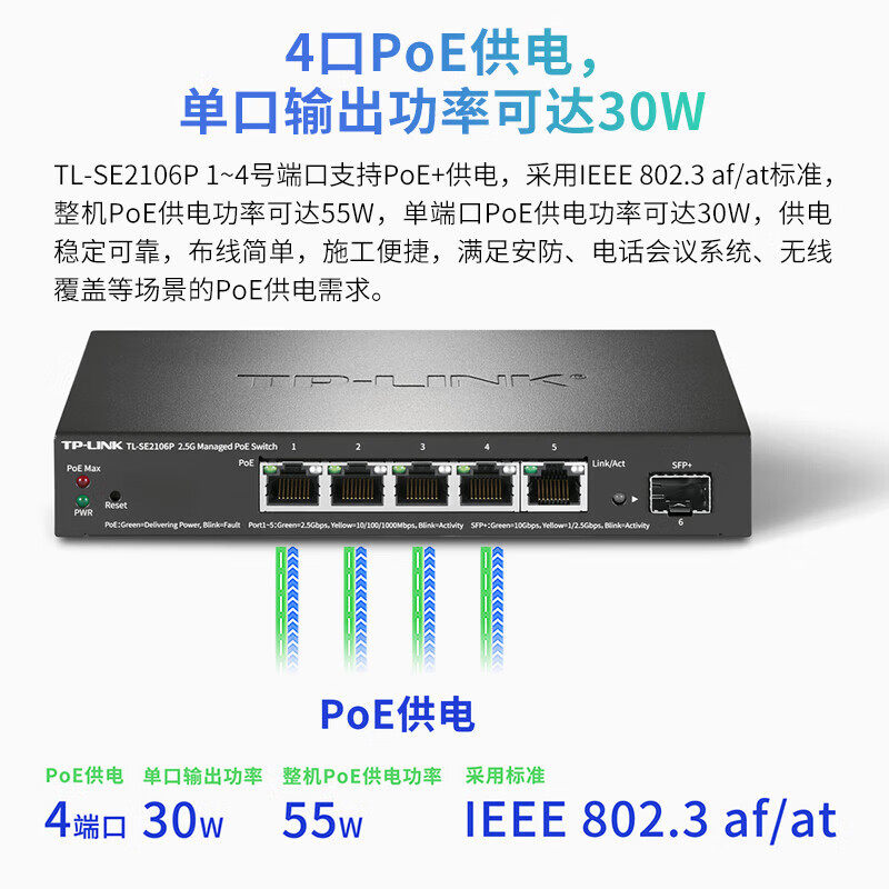 TP-LINK TL-ST2408PB 全万兆云管理PoE交换机 2.5G超千兆PoE交换机 企业办公家用校园宿舍 TL-SE2109PB