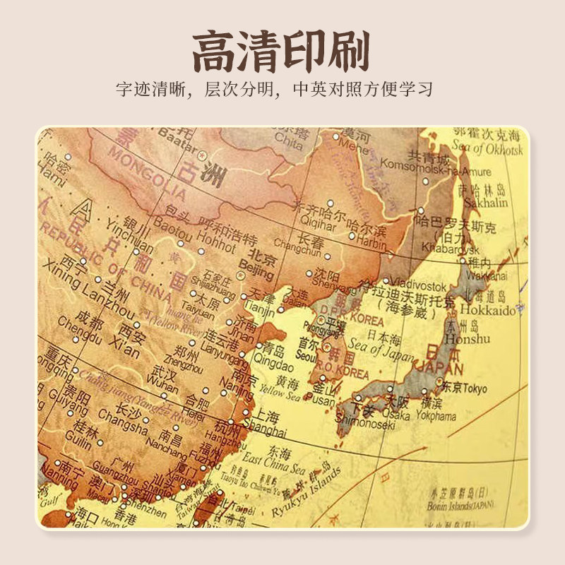 2025年新款黄色地球仪摆件轻奢高档仿古高清3d立体悬浮办公室书房客厅装饰品家居摆设夜灯32cm大号复古学生用