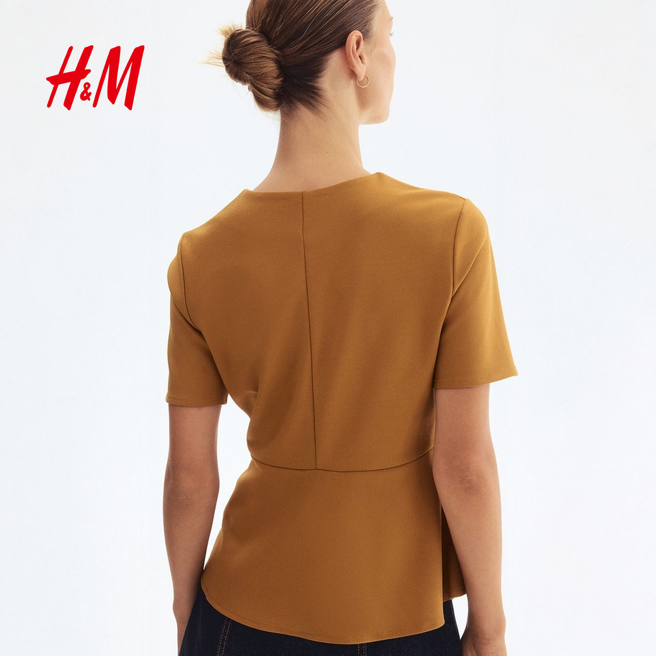HM女装T恤春季时尚喇叭裙式下摆圆领短袖上衣1303338