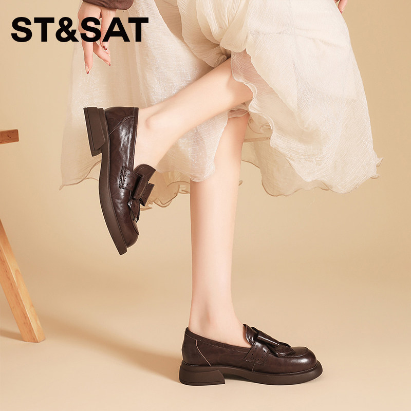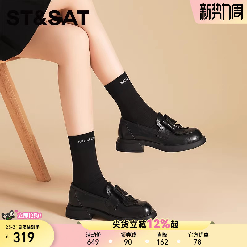 星期六真皮牛皮乐福鞋女鞋2025新款一脚蹬软底软面厚底英伦小皮鞋