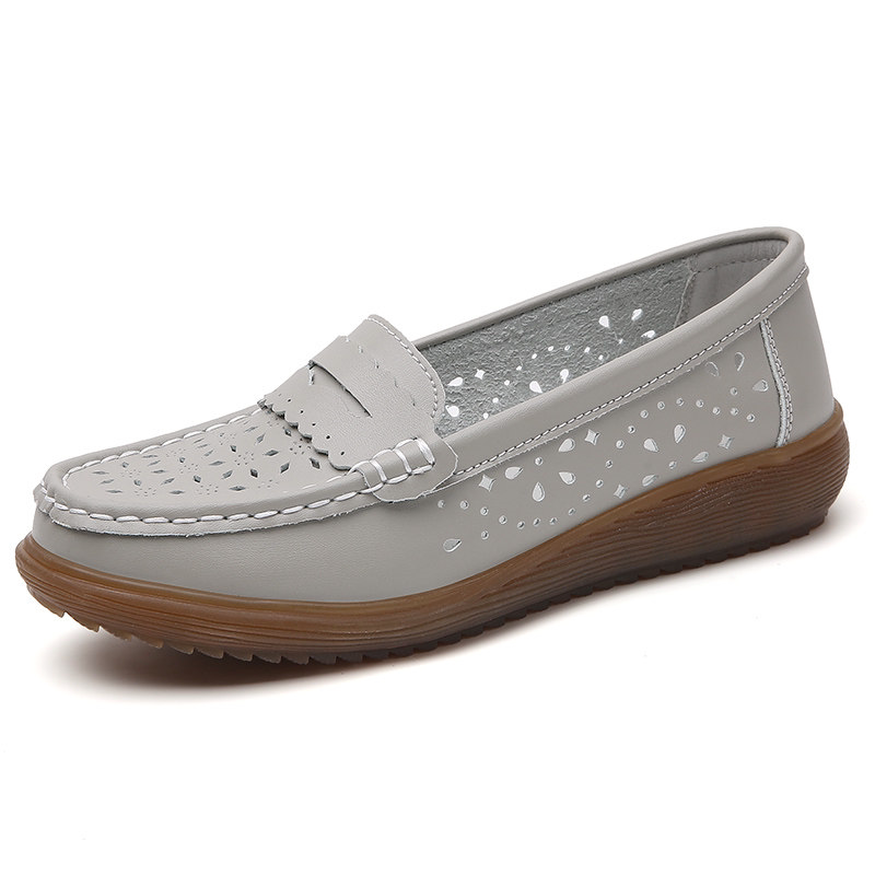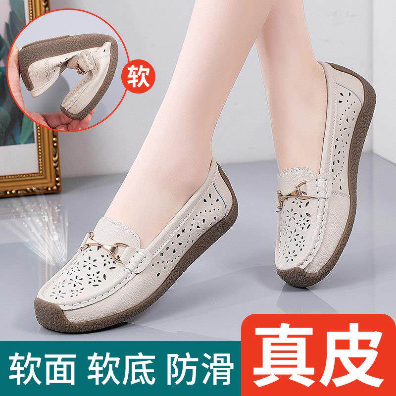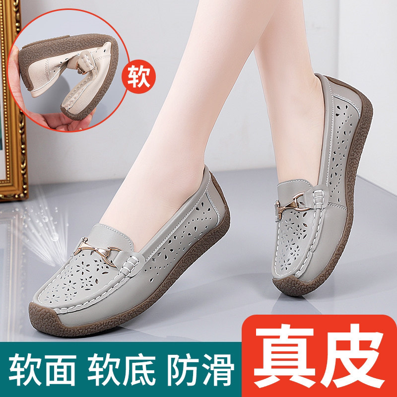 真皮豆豆鞋女2024春夏季浅口平底百搭防滑软底妈妈中老年休闲单鞋
