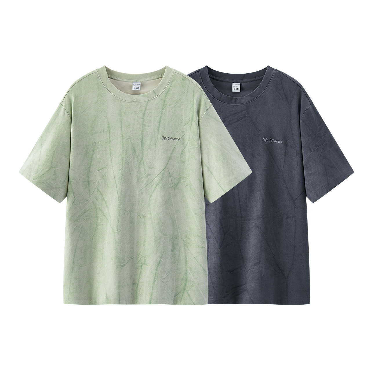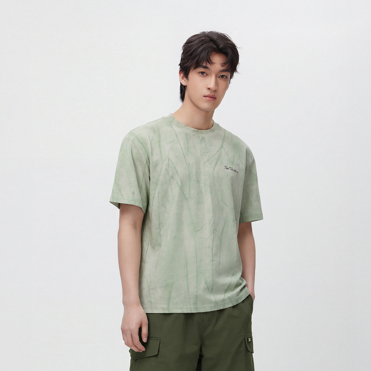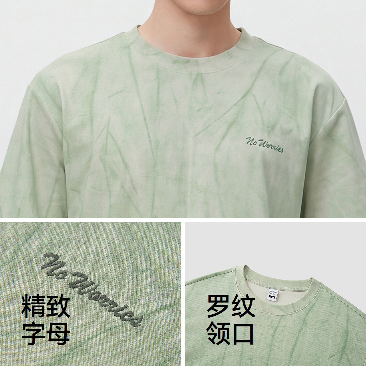 森马短袖T恤男夏季蜡染肌理精致绣花字母针织衫复古时尚纹样上衣