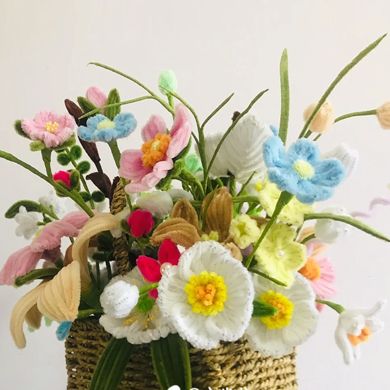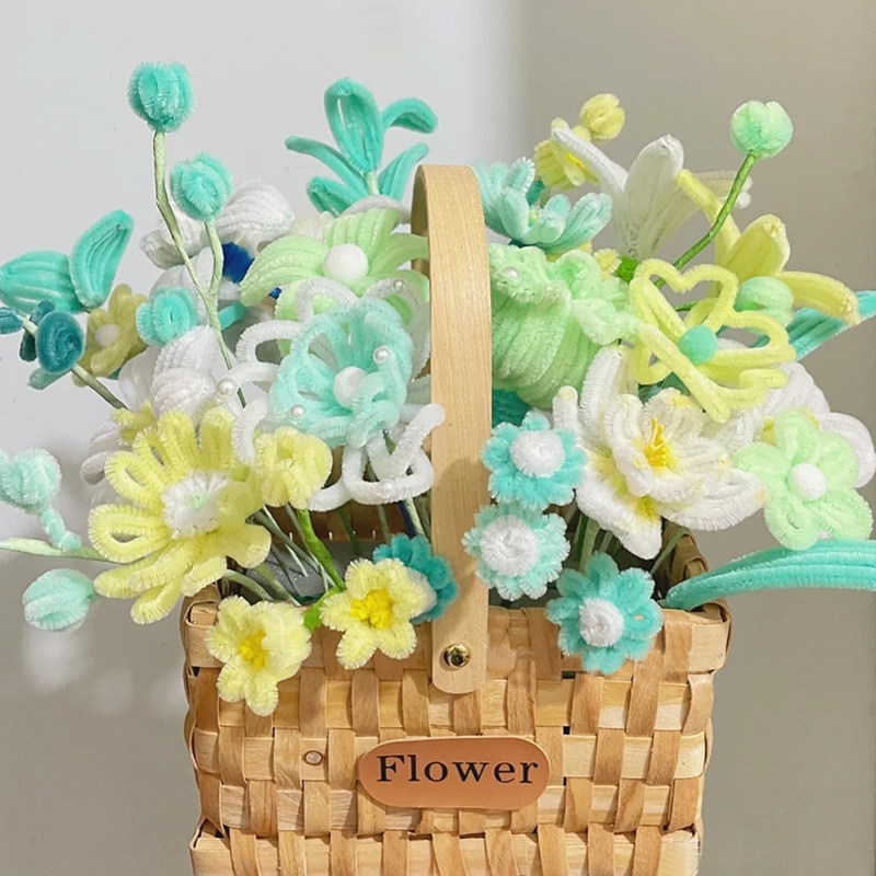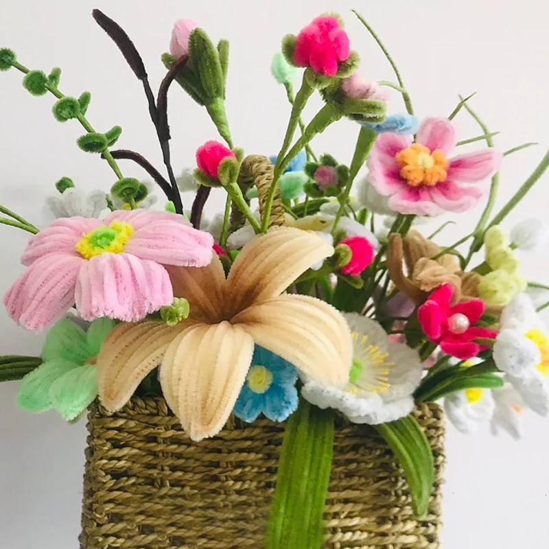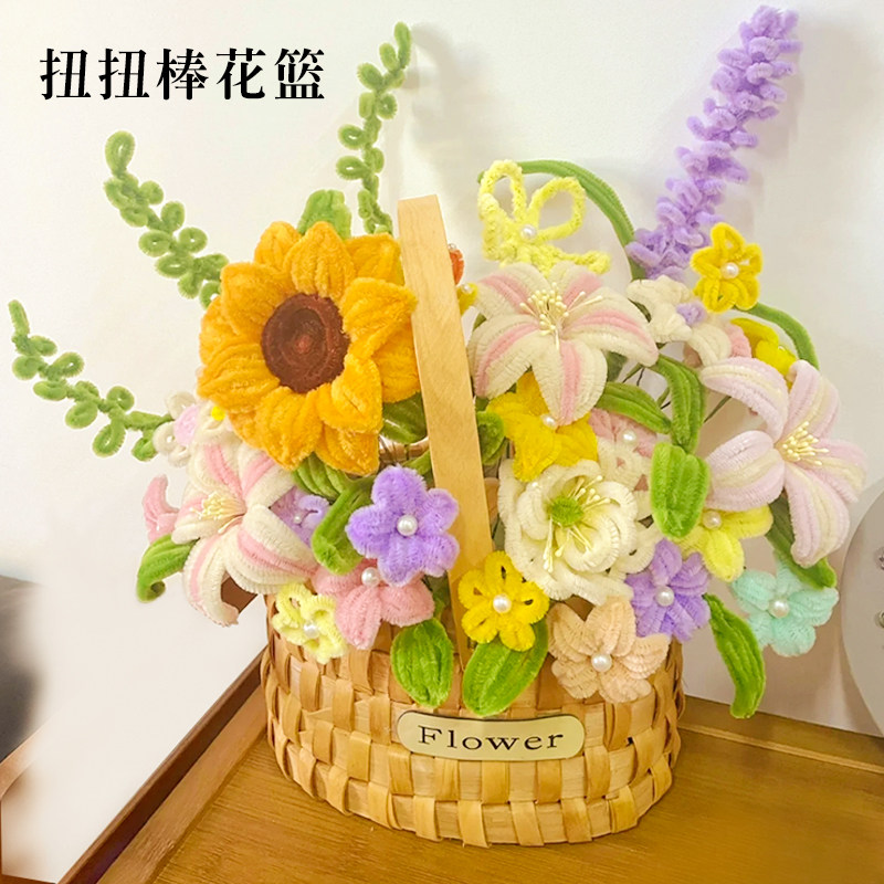 扭扭棒花篮向日葵花束手工diy材料包荷花扭扭棒网红加密毛根儿童幼儿园彩色毛条妞妞棒玫瑰花郁金香马卡龙色