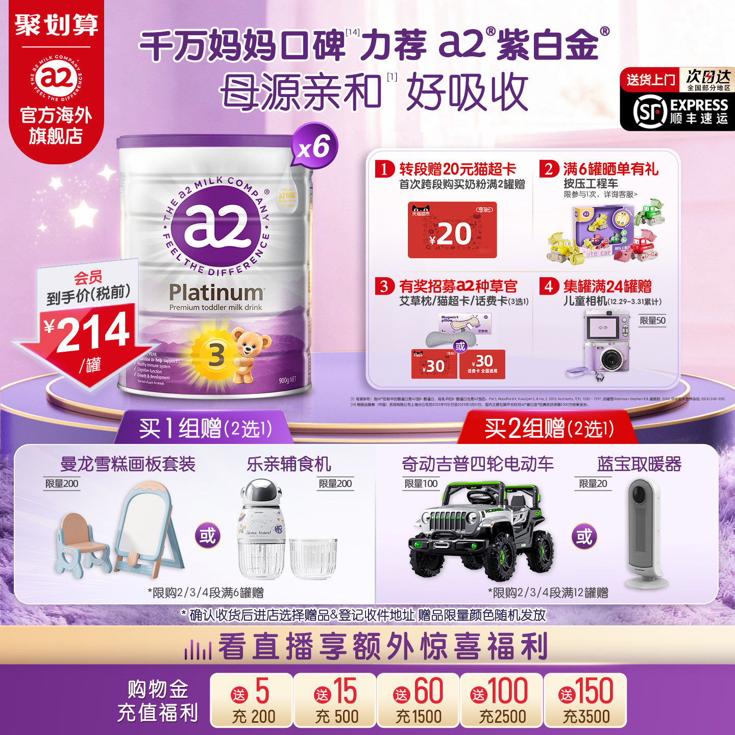 [官方旗舰]a2紫白金三段幼儿配方奶粉3段进口A2蛋白1-4岁900g*6罐