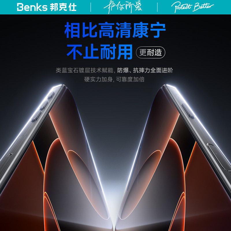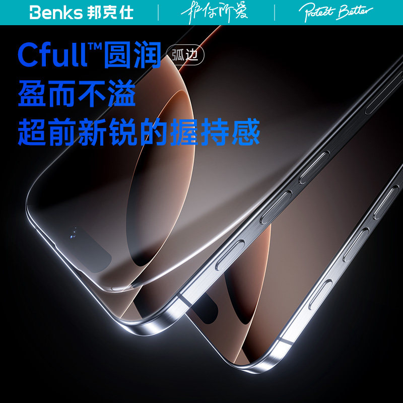【DLC类蓝宝石】Benks适用苹果17promax金刚康宁系列iPhone16热弯钢化膜全屏覆盖手机膜保护膜贴膜无尘仓3d