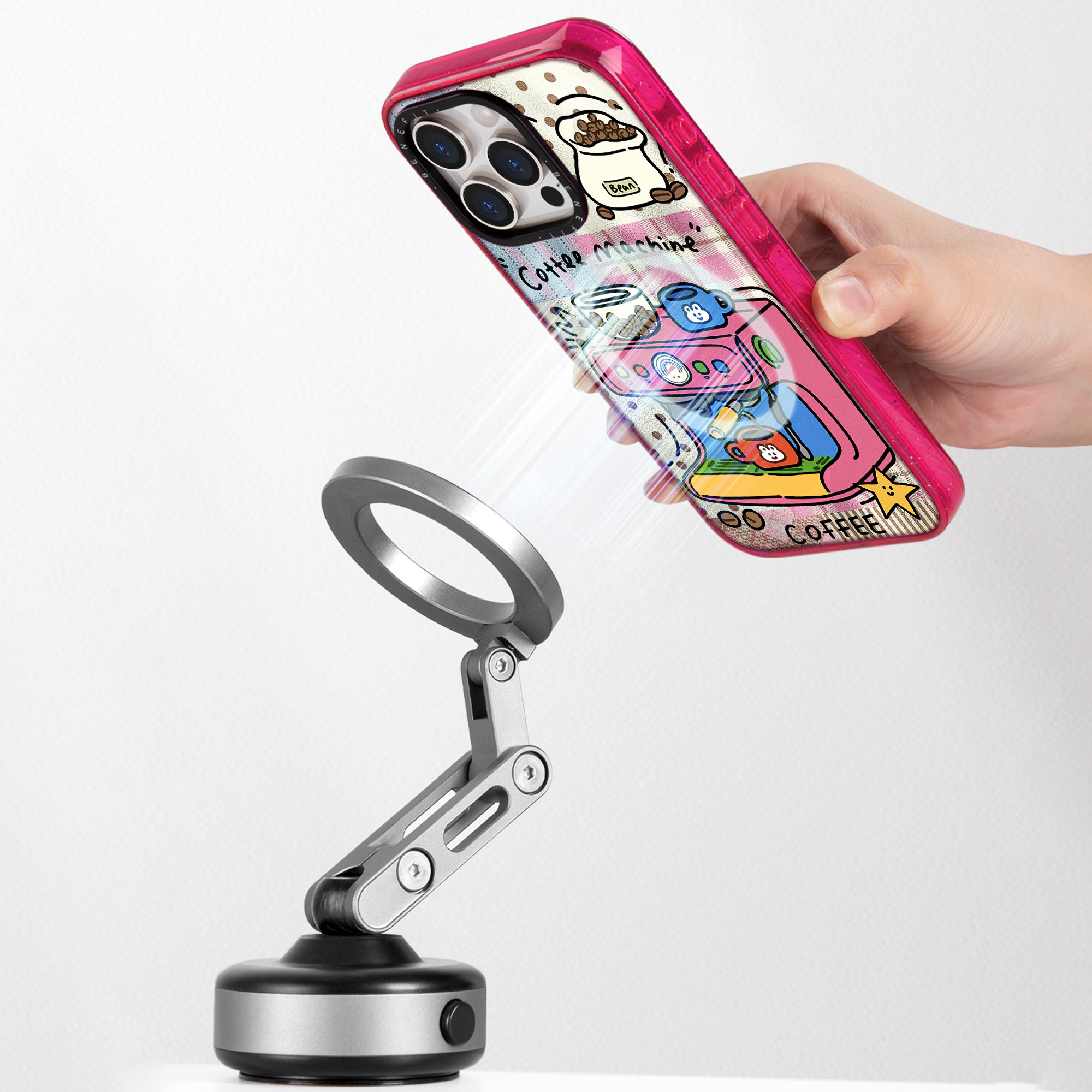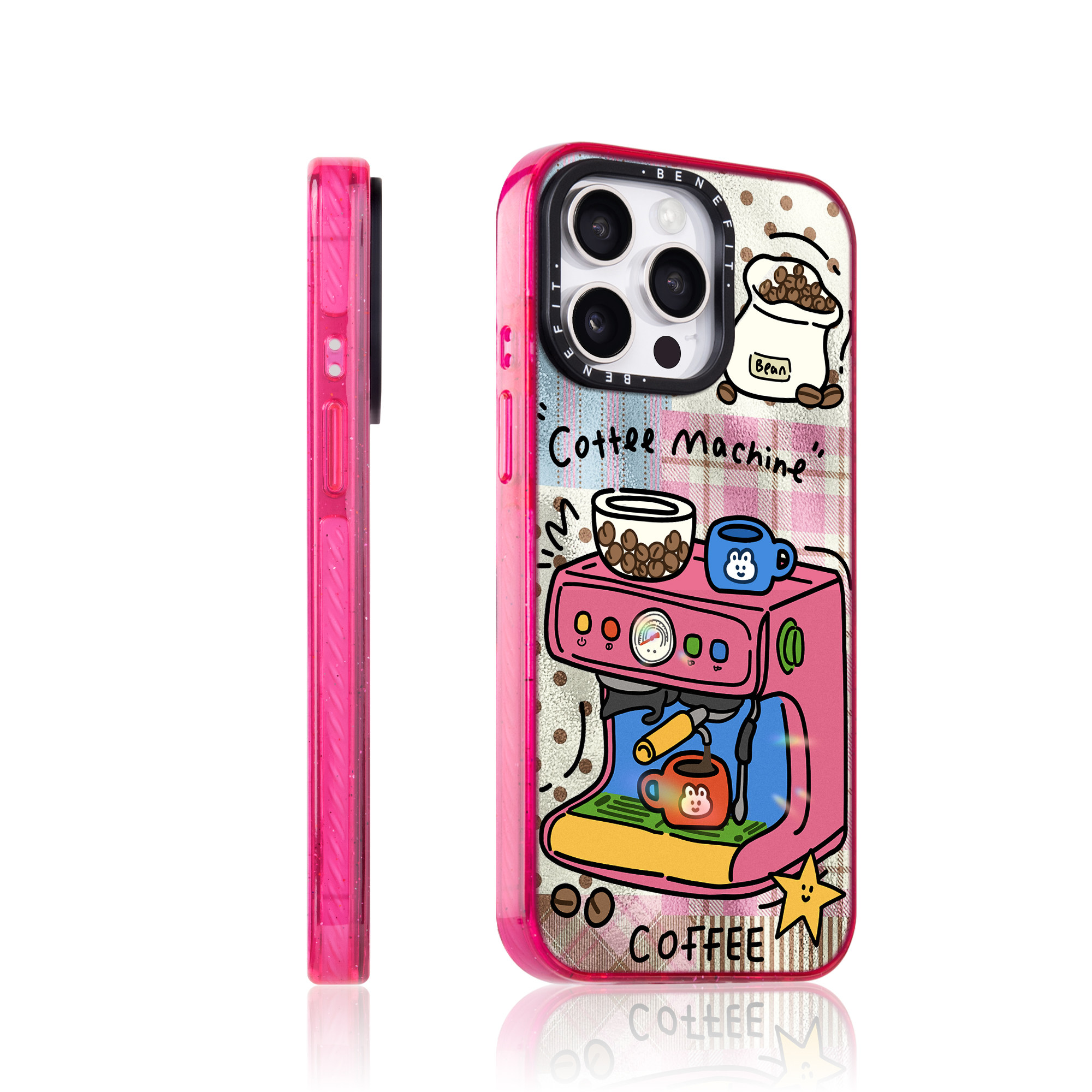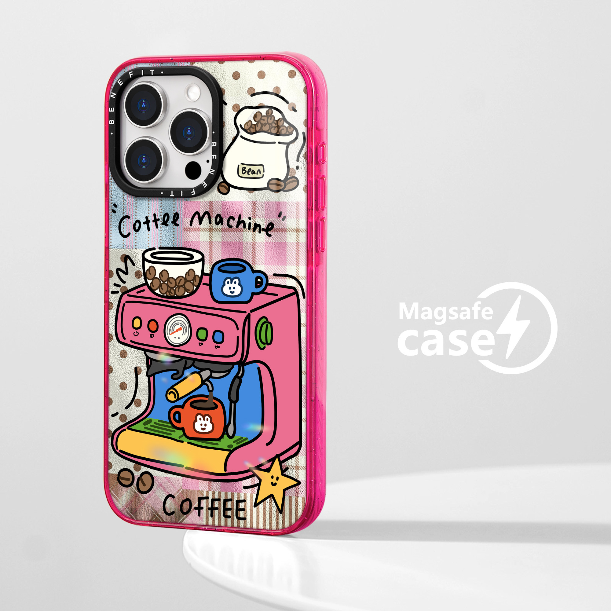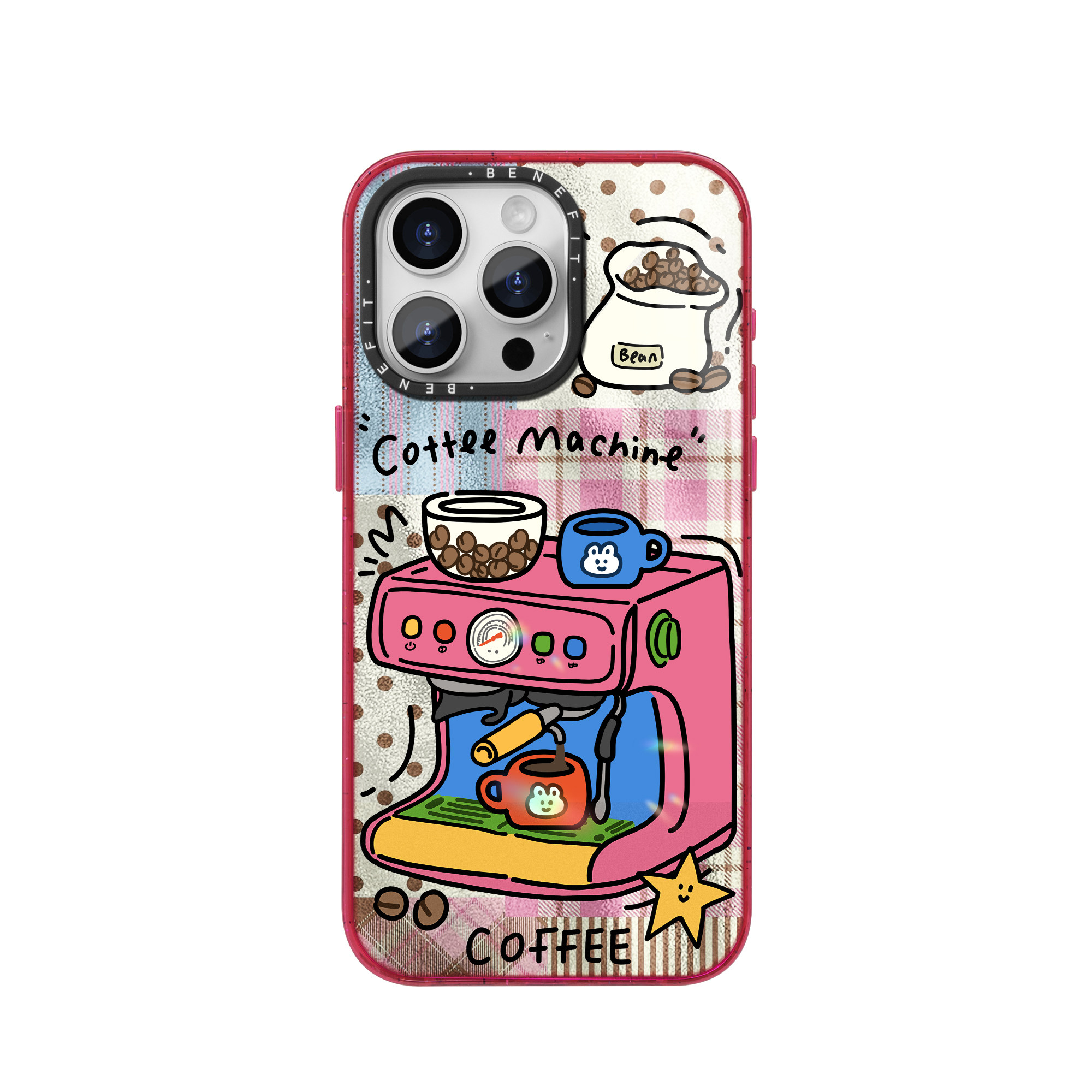 benefit复古拼贴红色咖啡机17适用于iphone16promax苹果15PRO晶盾磁吸手机壳13新款14套12波漾纹防摔彩色边框