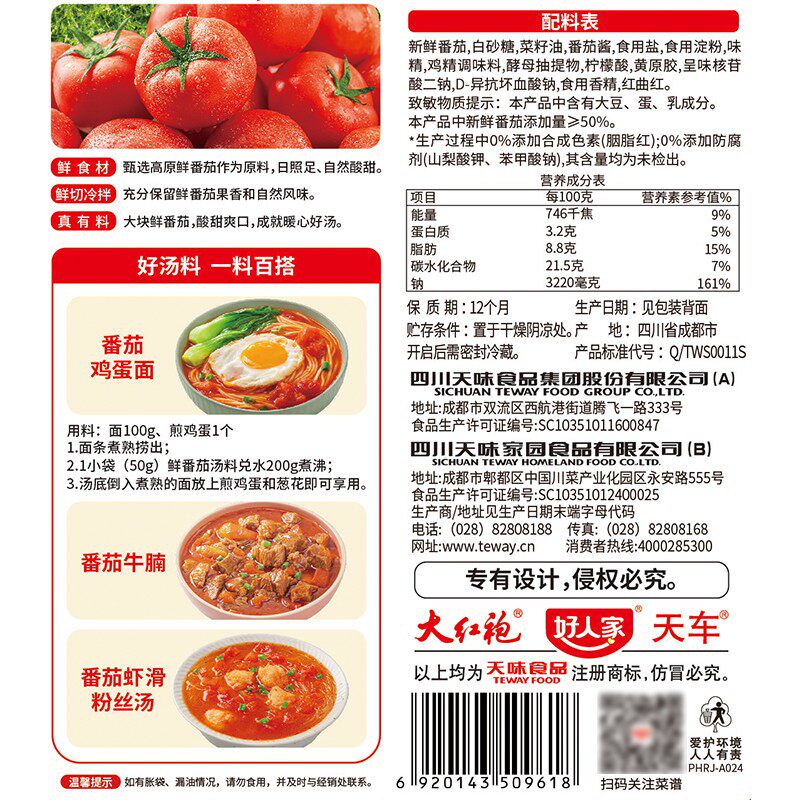 好人家鲜番茄汤料包番茄火锅底料不辣小包装一人份番茄牛腩汤底料