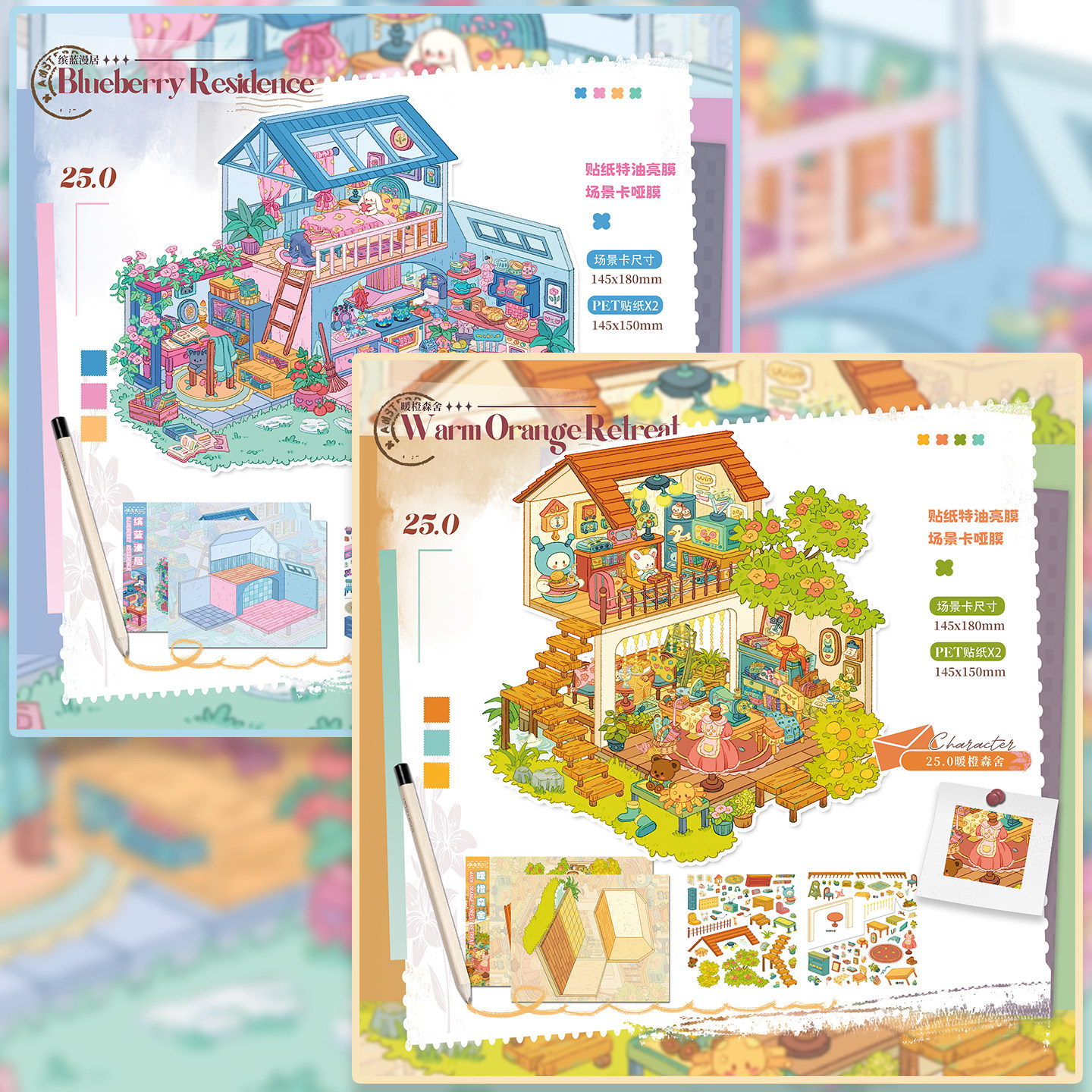 森林店铺造景贴纸纸次方26.0系列特油工艺复古可爱大号花鸟鱼市场微观微缩场景3d立体小屋贴画手帐玩具女孩