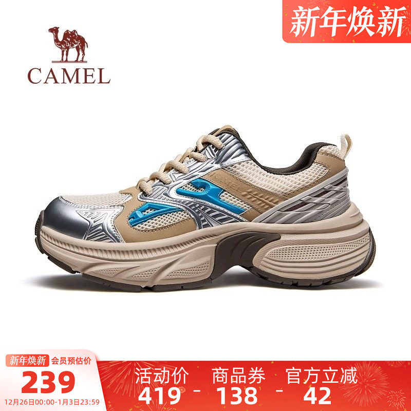 骆驼轻潮厚底老爹鞋