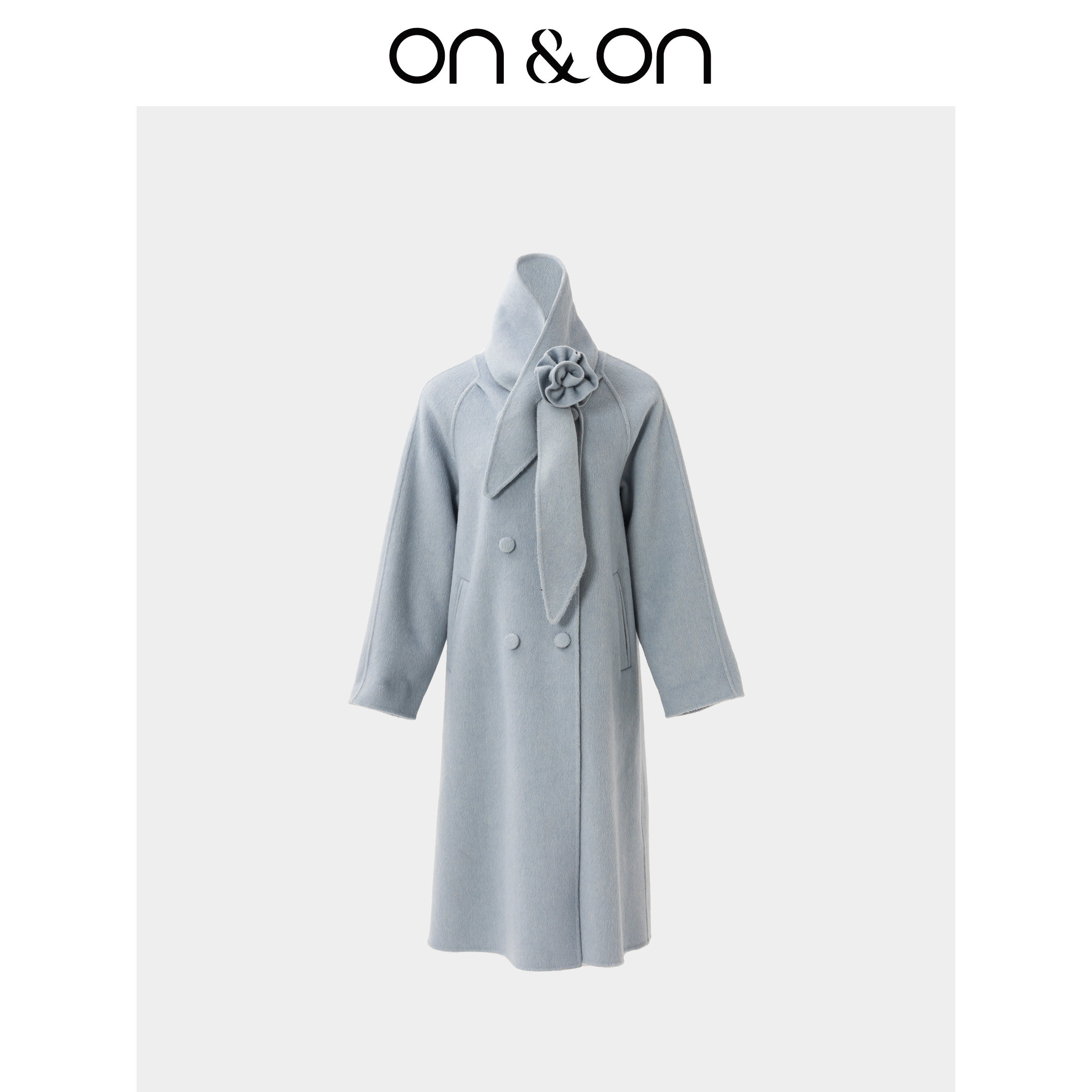ON&ON/安乃安2025冬季新款韩系花朵围领甜美气质双面毛呢大衣女