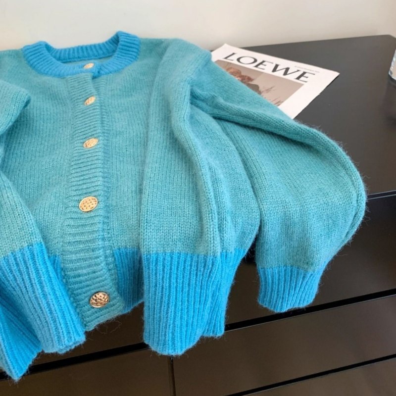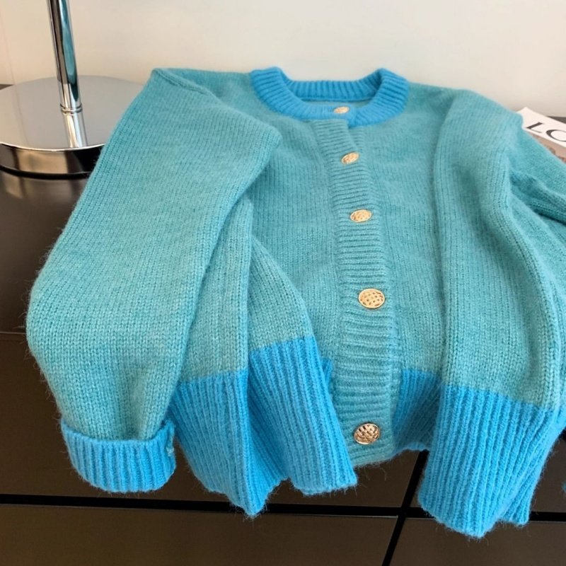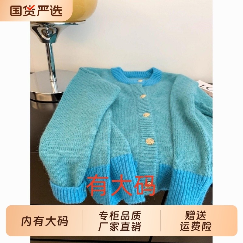 慵懒撞色软糯毛衣女秋冬新款甜美减龄大码内搭针织上衣