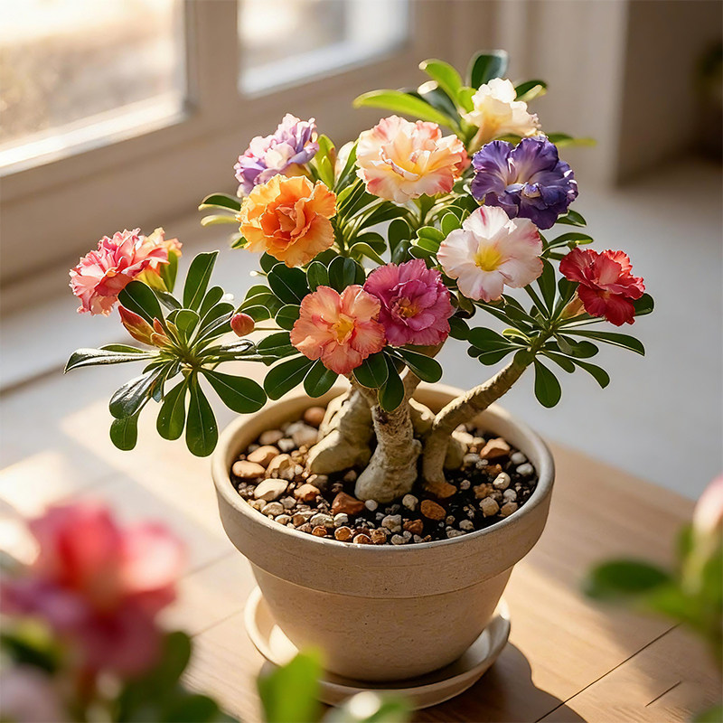 多肉重瓣沙漠玫瑰夏带花苞阳台室内好养小盆栽花卉绿植小花懒人花