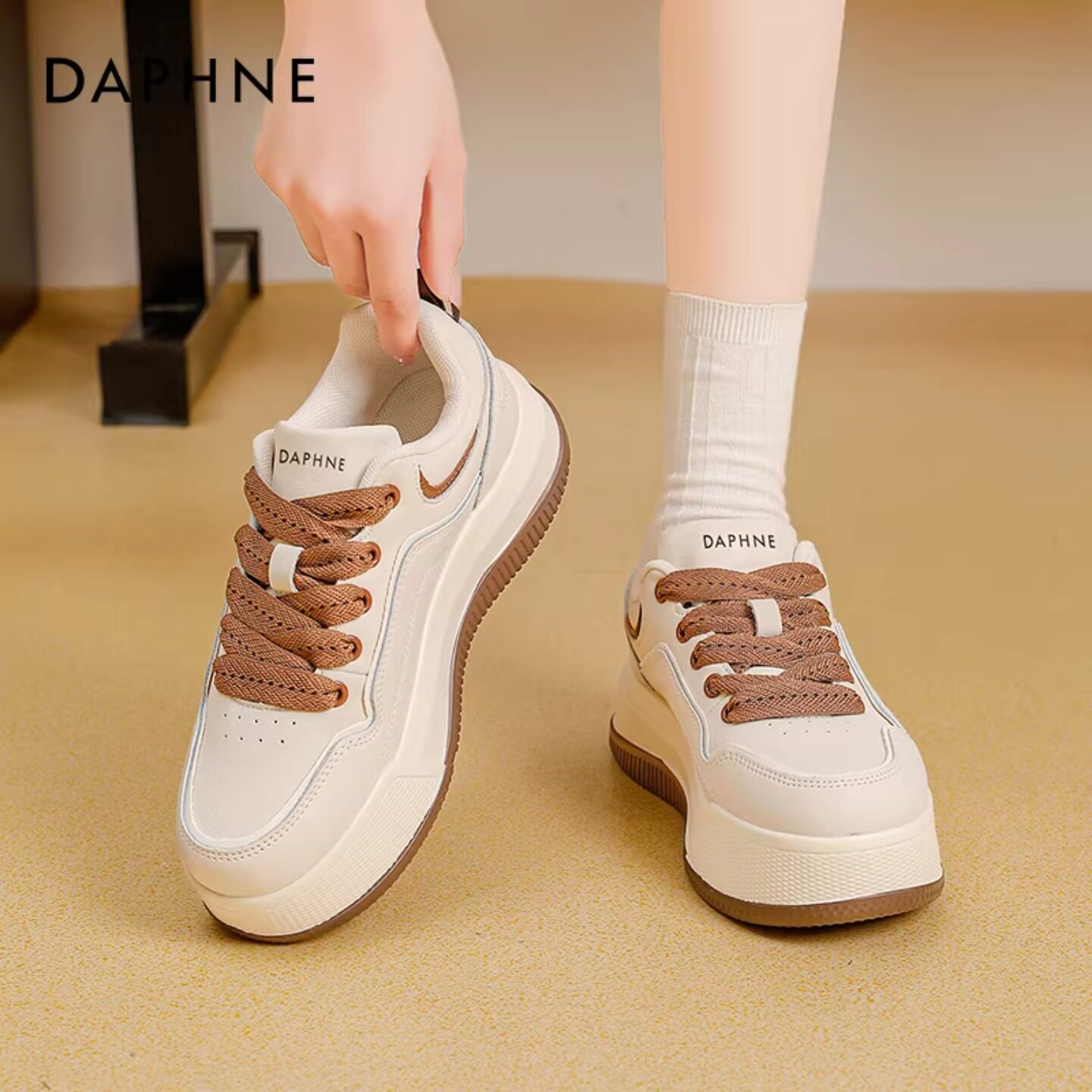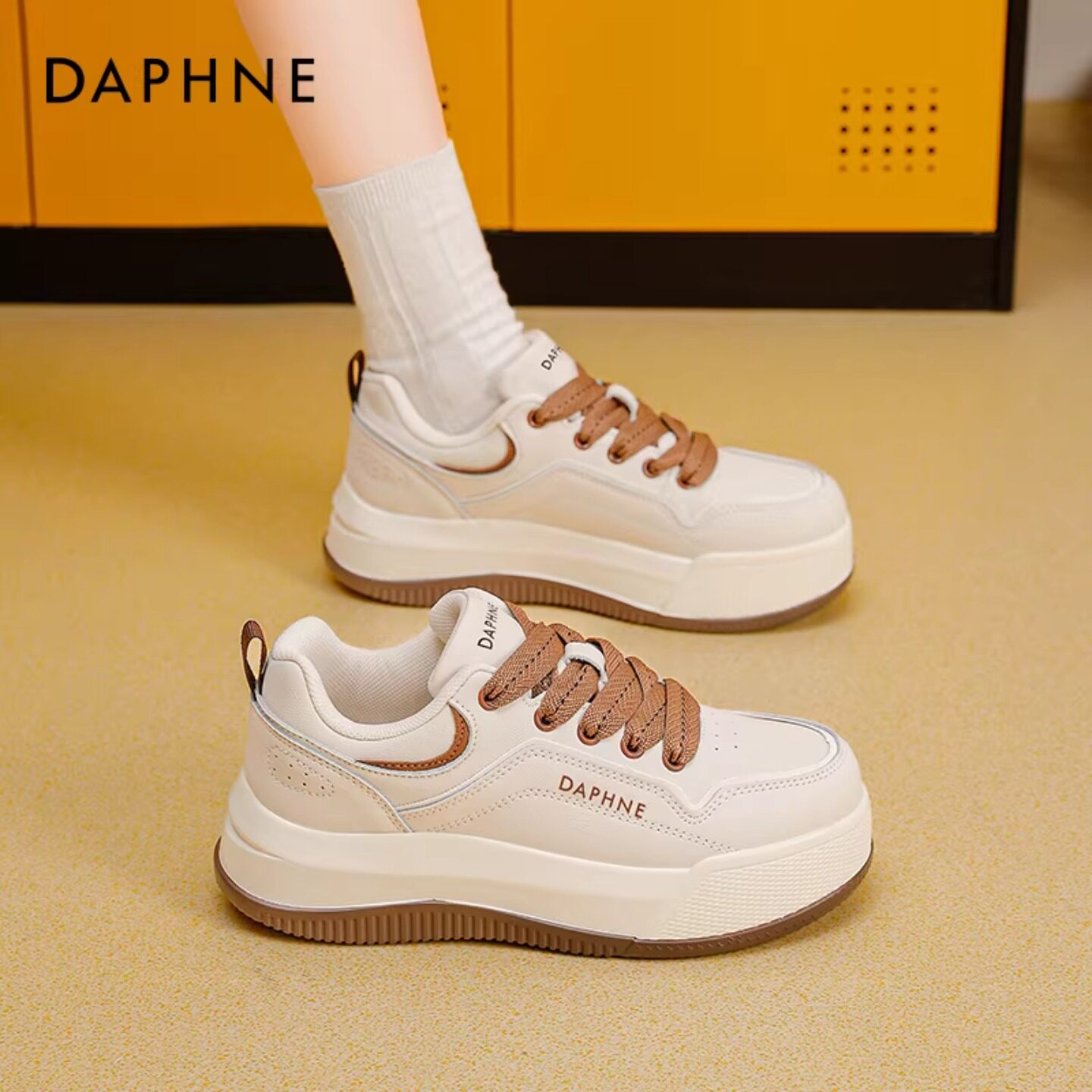 达芙妮真皮小白鞋女款厚底2026新款增高软底白色松糕运动休闲板鞋