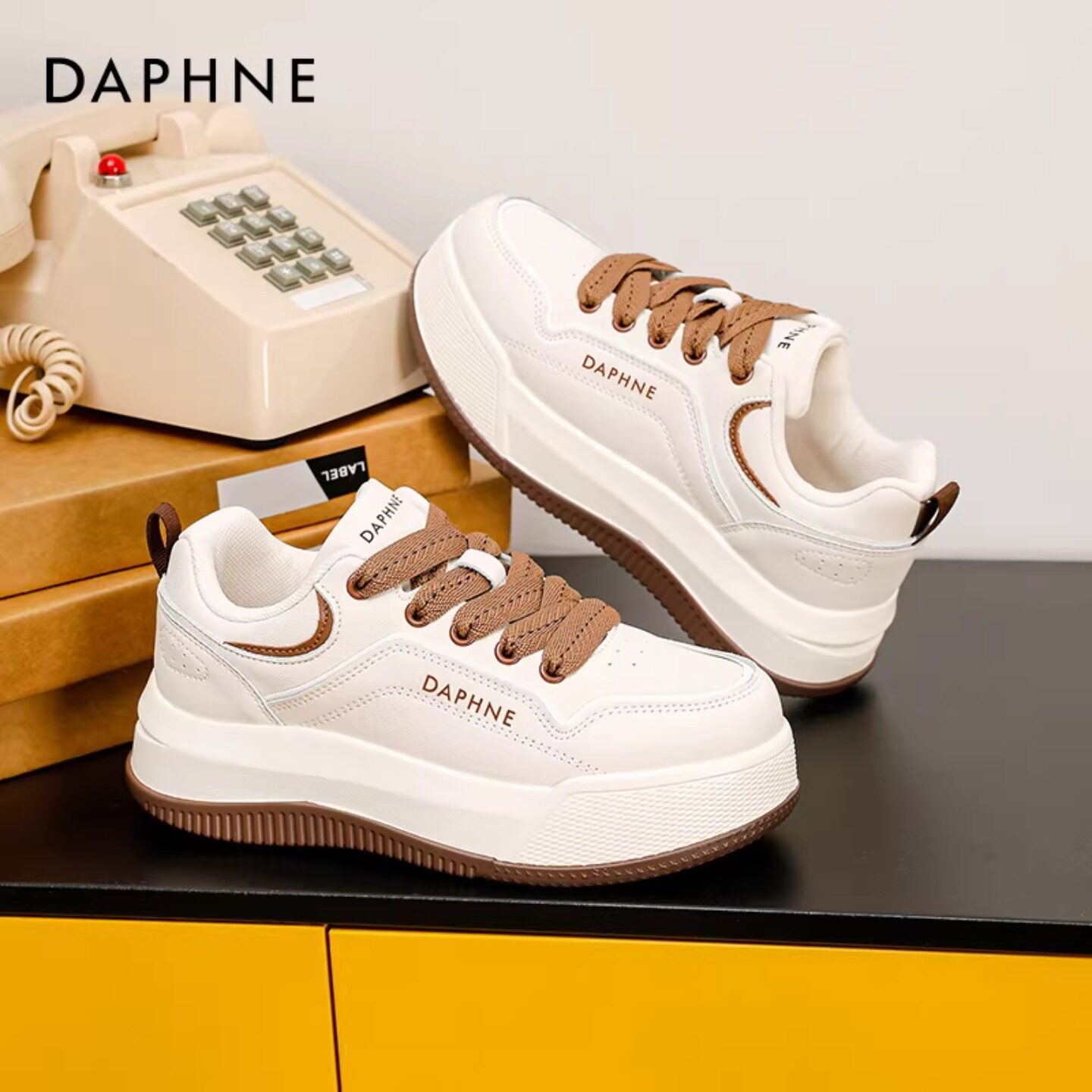 【明星同款】Wander around 复古棕色厚底增高休闲板鞋男女同款