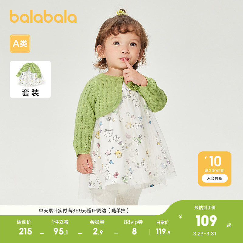 巴拉巴拉童装宝宝套装女童连衣裙春装婴儿开衫裙子两件套网纱纯棉