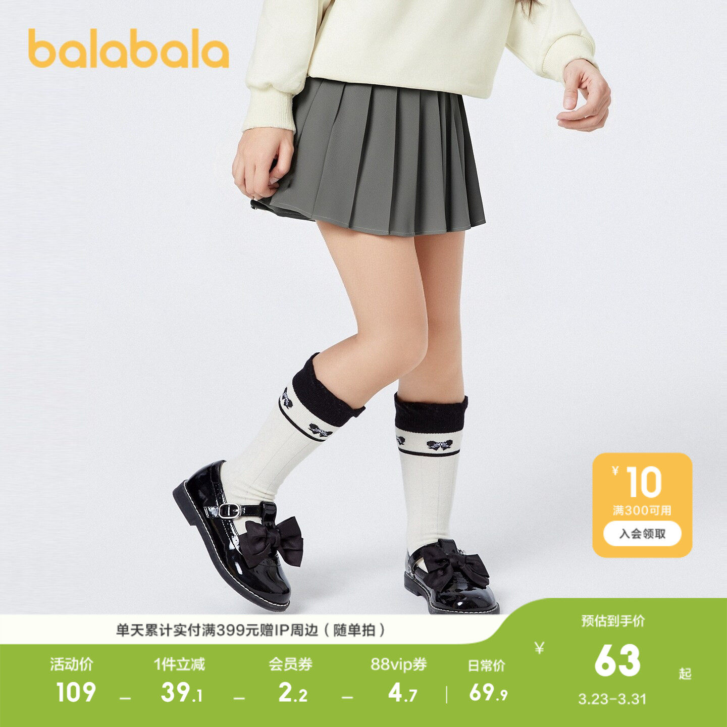 巴拉巴拉儿童裙子春秋装童装女童短裙百褶半身裙学院风舒适百搭萌
