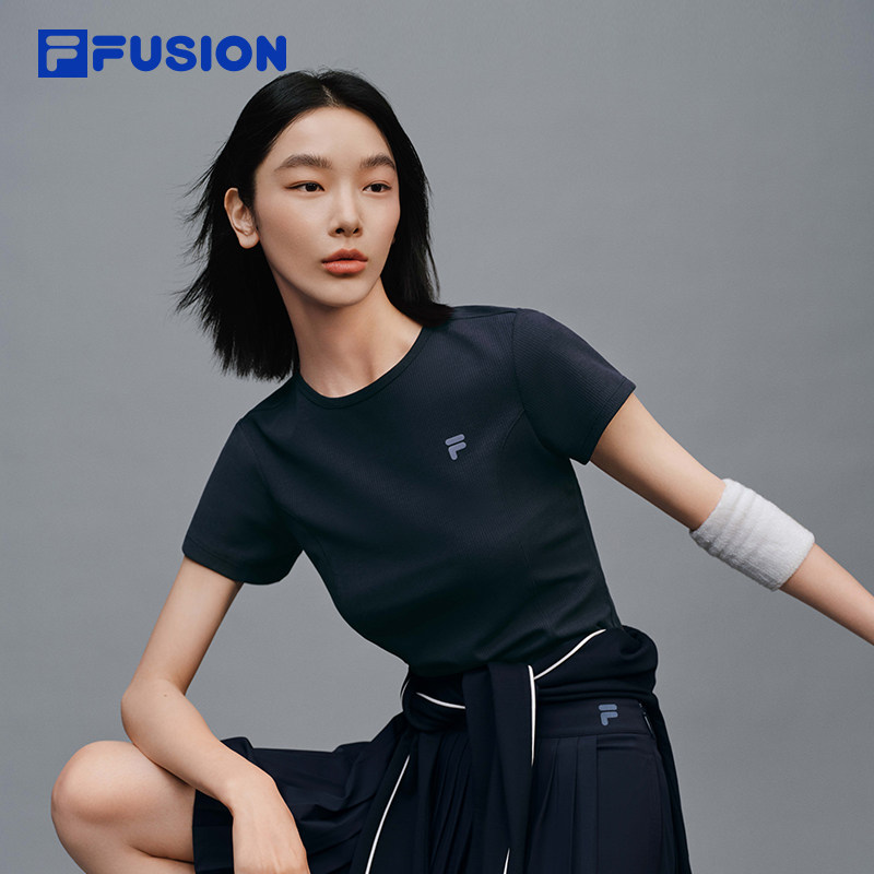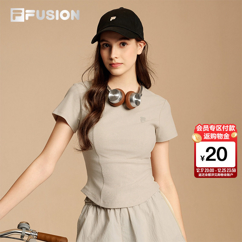 FILA FUSION斐乐潮牌女子针织短袖衫2025秋季新款时尚休闲紧身T恤