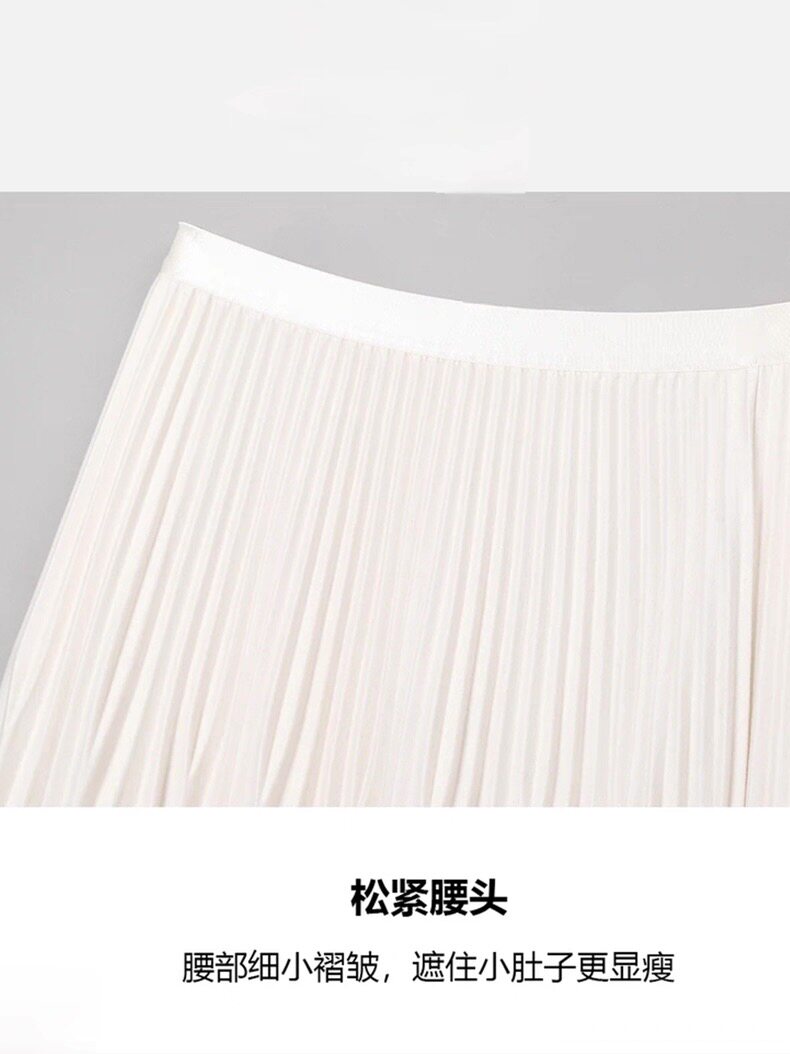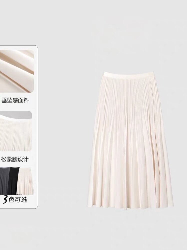 她池松紧腰百褶裙2025秋装新款女装时尚简约中长款A字高腰半身裙