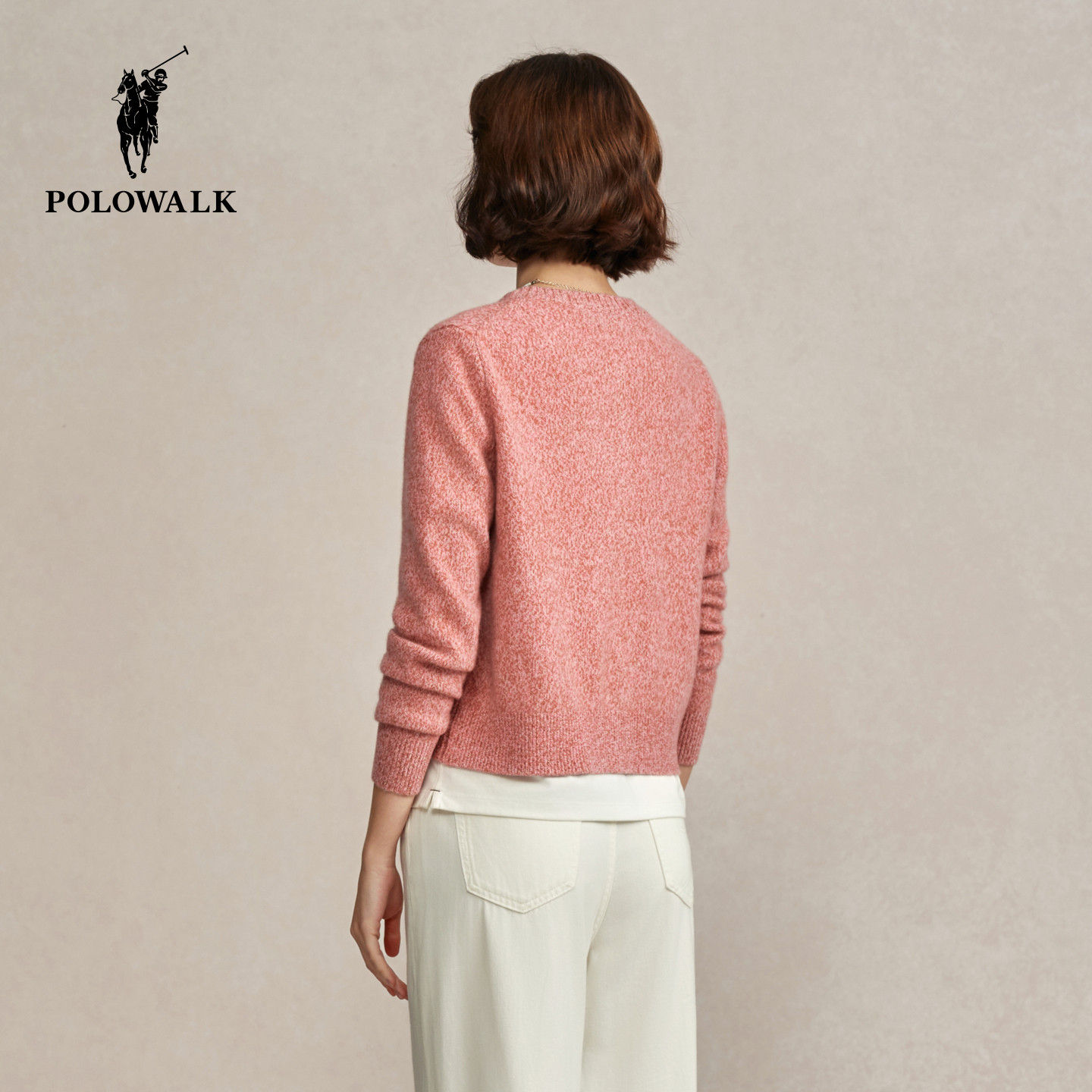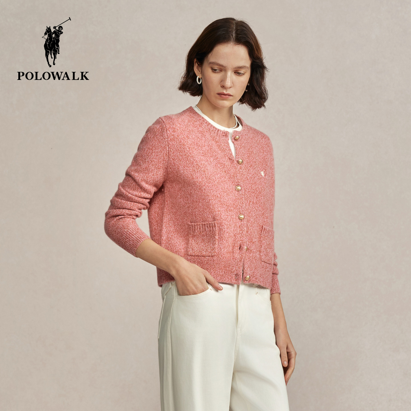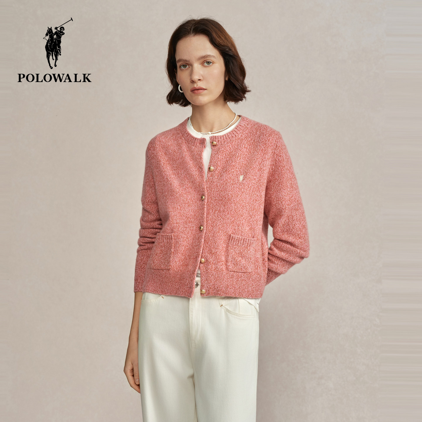 【100%绵羊毛】POLOWALK女式羊毛衫2025冬季新品简约圆领羊毛开衫