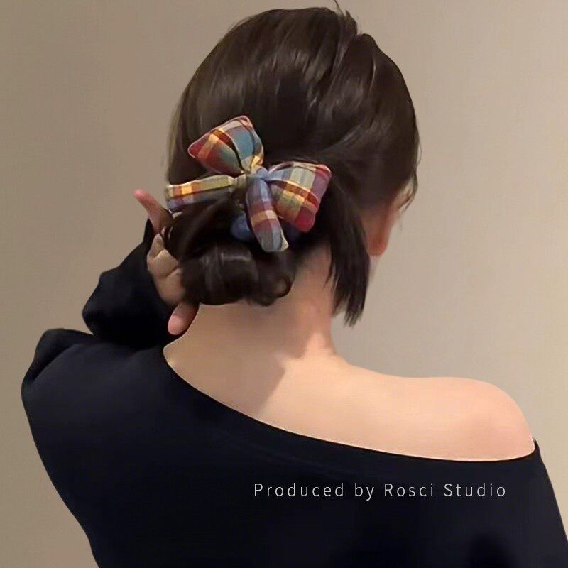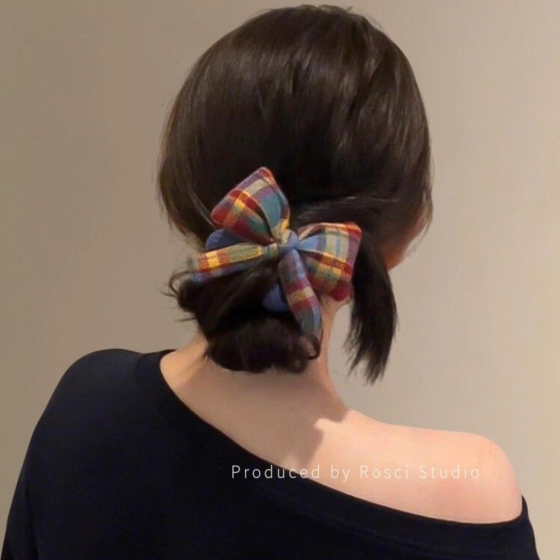 大肠发圈秋冬复古ins彩虹格子蝴蝶结头绳丸子2025马尾发绳新款