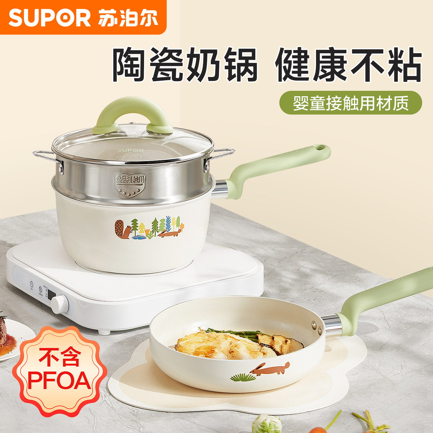 苏泊尔陶瓷奶锅婴儿辅食锅多功能蒸煮一体宝宝蒸锅小锅燃气电磁炉