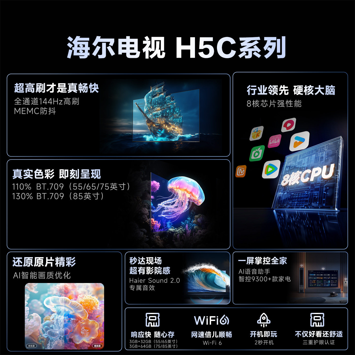 海尔H5C 55英寸65英寸75英寸85英寸4K高清家用彩电智能液晶电视机
