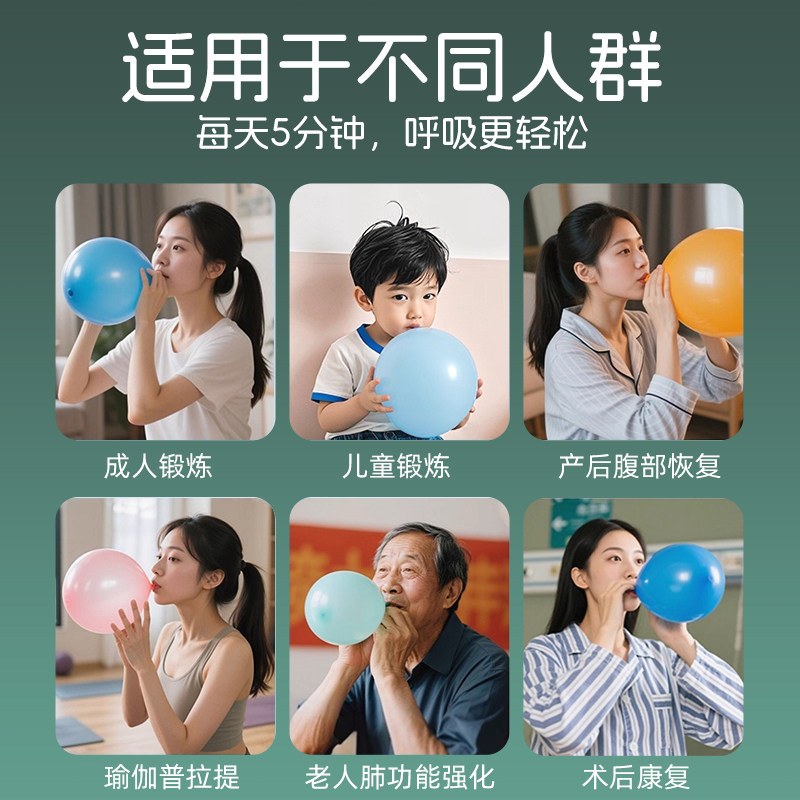 腹式呼吸训练器吹气球锻炼肺活量产后修复瑜伽气球乳胶练习学校