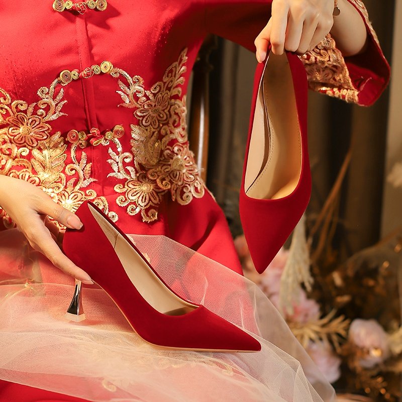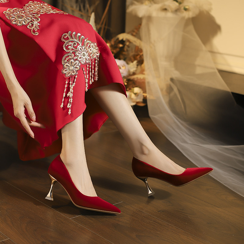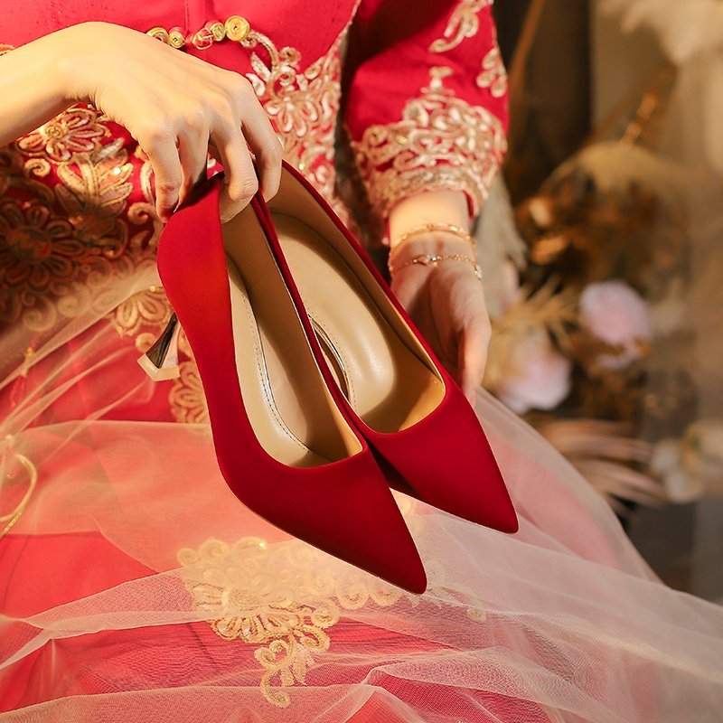 秀禾敬酒礼服红色结婚鞋女婚纱中式新娘鞋宴会订婚日常可穿高跟鞋
