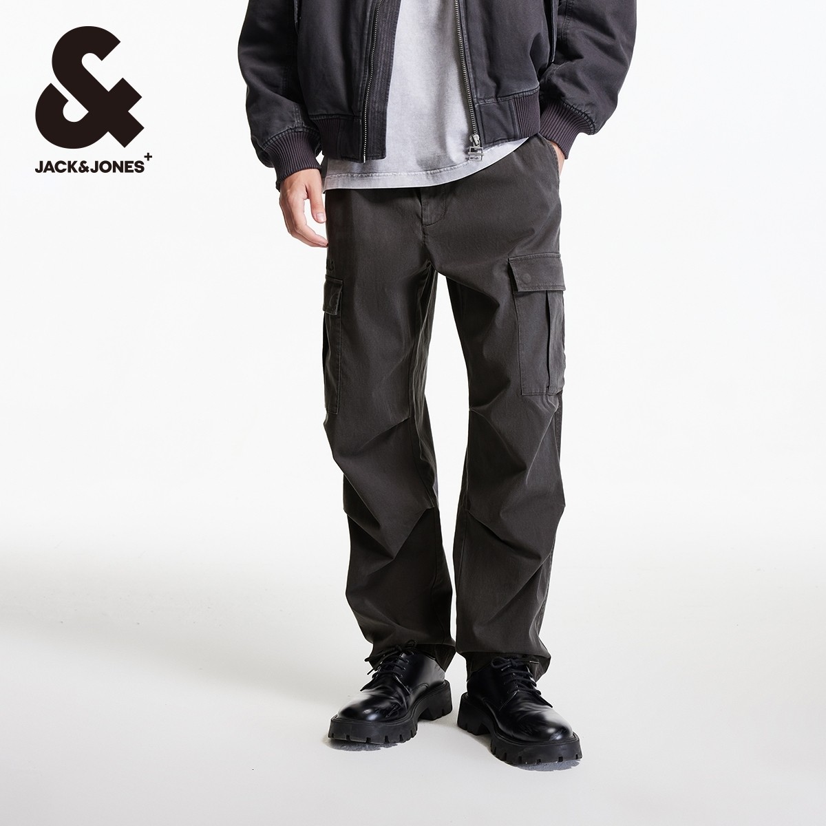 杰克琼斯男装春秋季宽松天丝休闲裤子直筒工装伞兵裤刺绣长裤