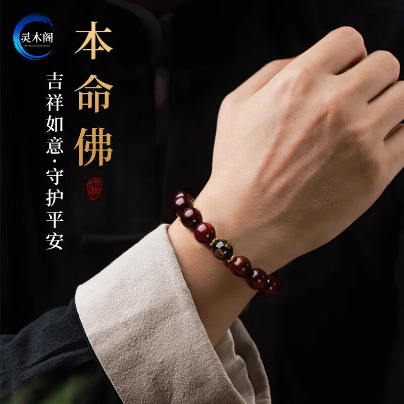 印度小叶紫檀手串男本命年转运佛珠十二生肖马年老料檀香木手链女