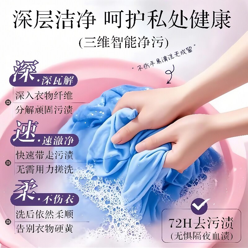 妇炎洁内裤清洗液女士除菌除螨清洗剂祛血渍黄官方专用内衣洗衣液