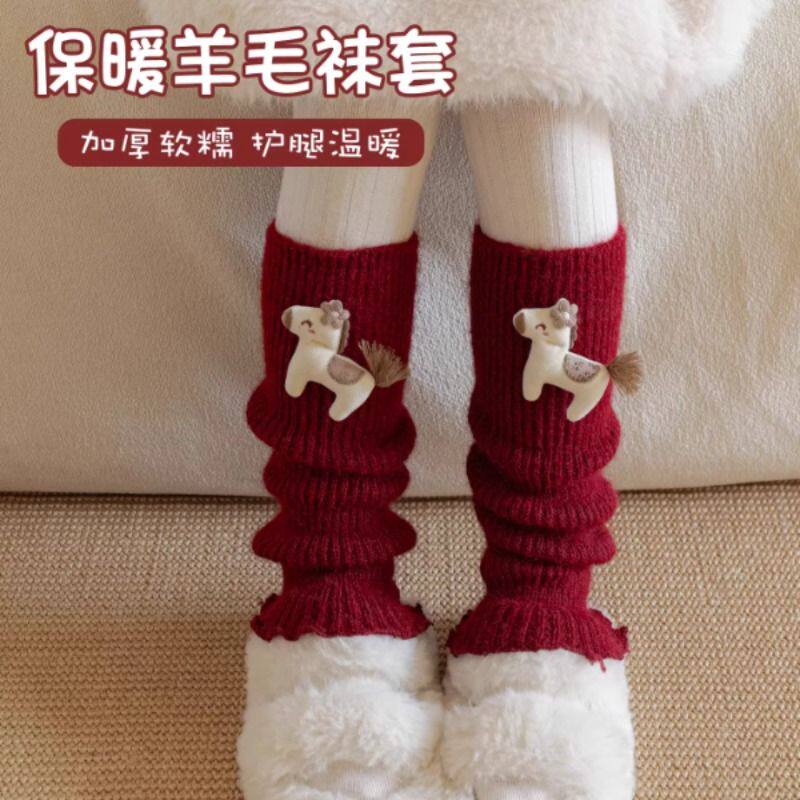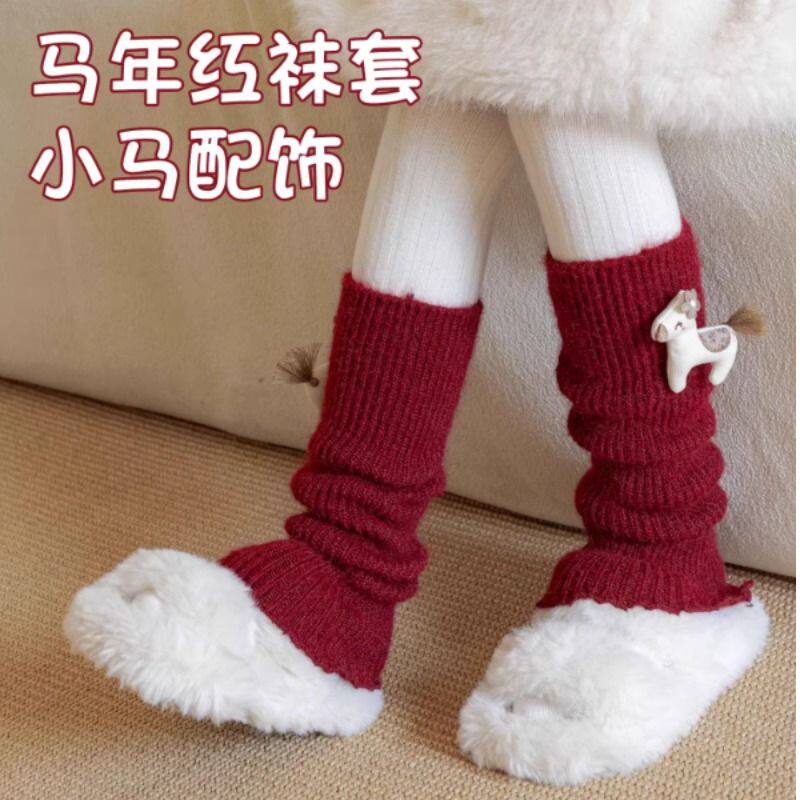 女童袜套秋冬季加厚保暖堆堆袜儿童过年小腿套女孩洋气马年长筒