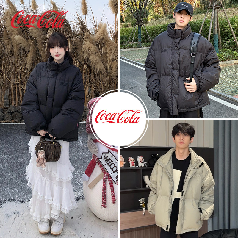 Coca-Cola/可口可乐 假两件棉服连帽棉外套情侣冬装男女同款