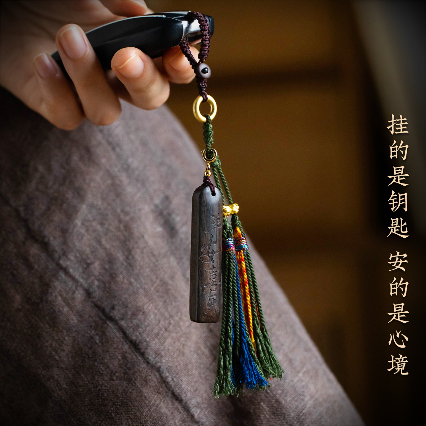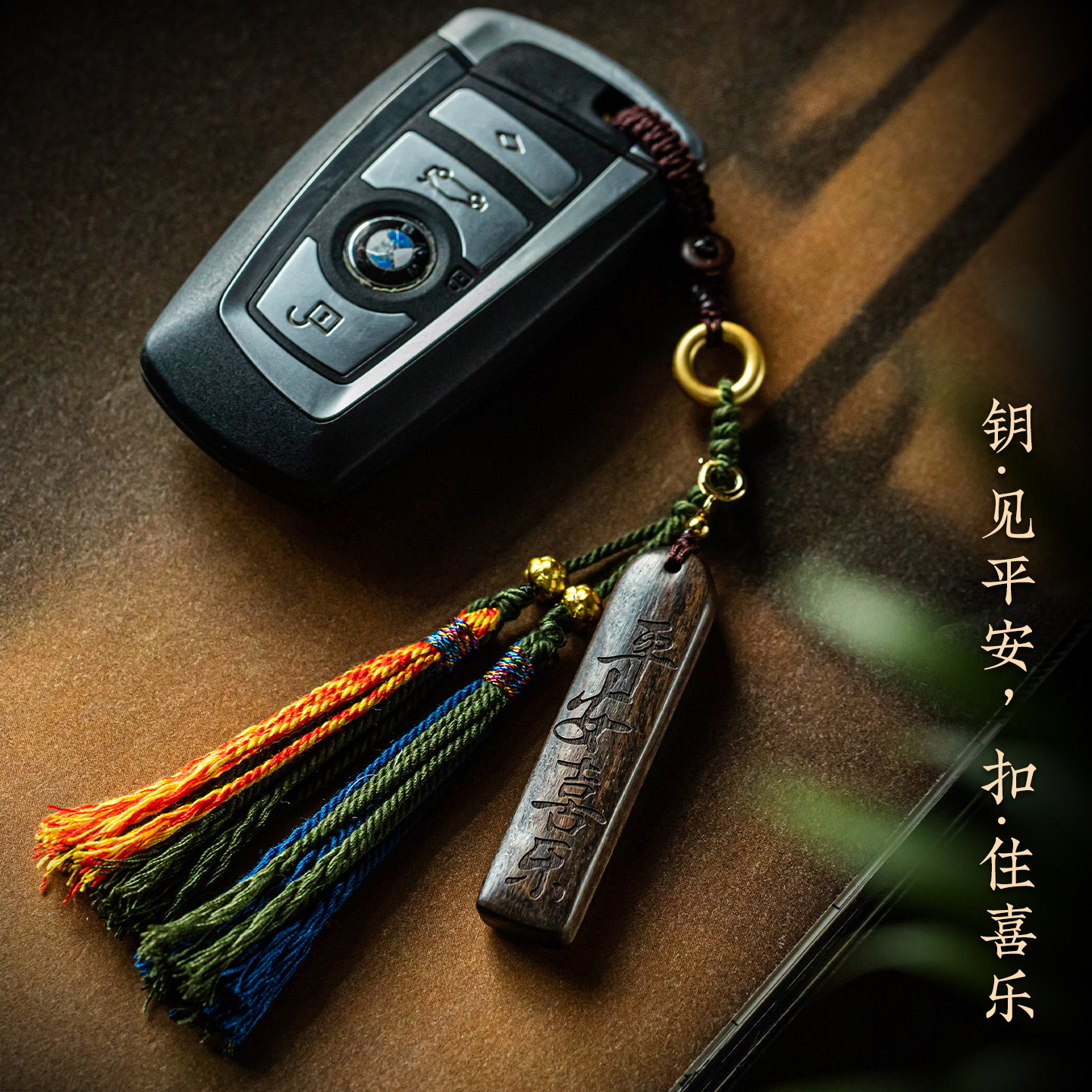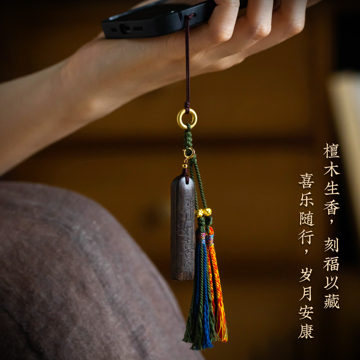 大善堂黑檀木手机链挂件平安喜乐钥匙扣藏式流苏精编汽车钥匙扣挂