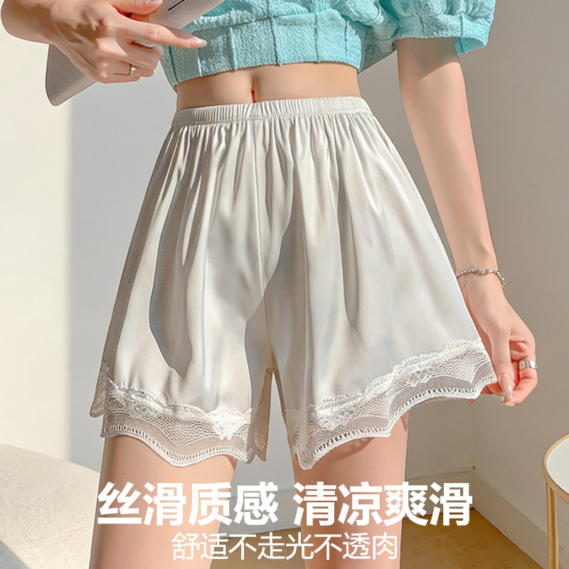 白色安全裤女防走光可外穿不卷边睡裤薄款打底裤宽松蕾丝冰丝短裤