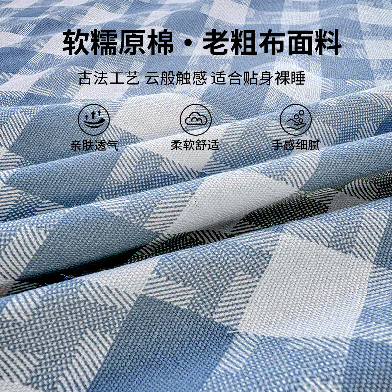 纯棉老粗布床单单件双人100全棉单人宿舍加厚被单枕套三件套秋冬