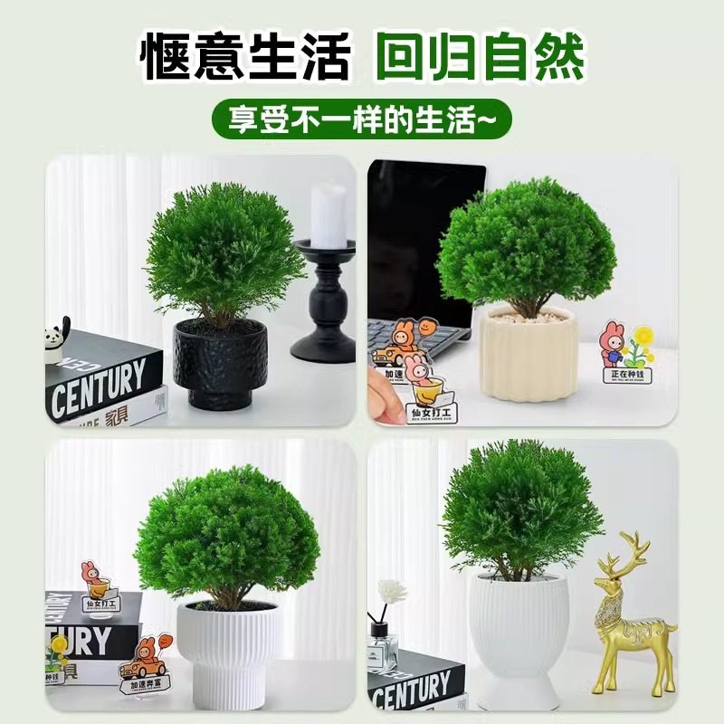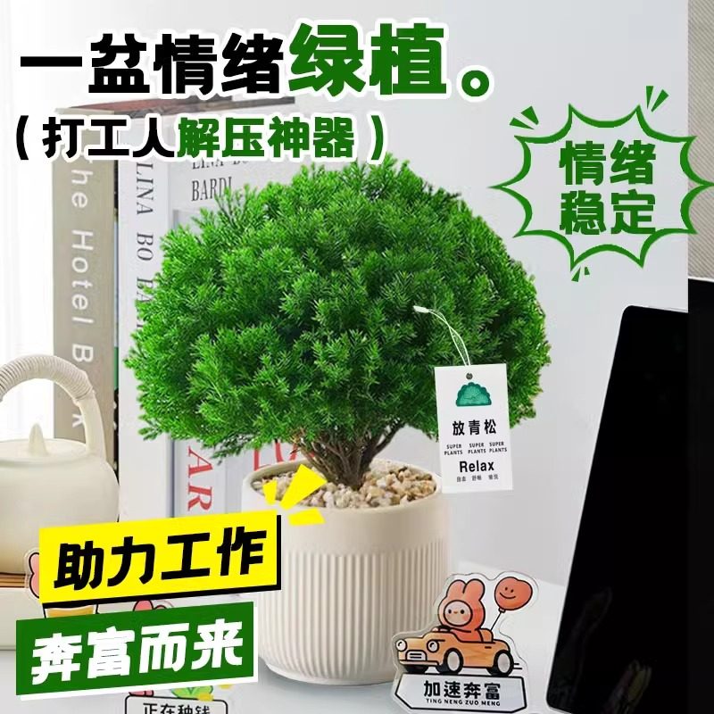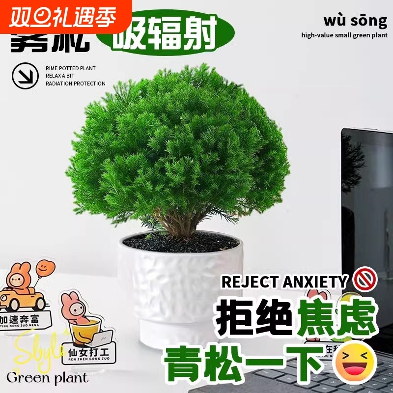 桌面盆栽绿植放青松植物办公室雾凇四季常青好养活室内工位小盆景
