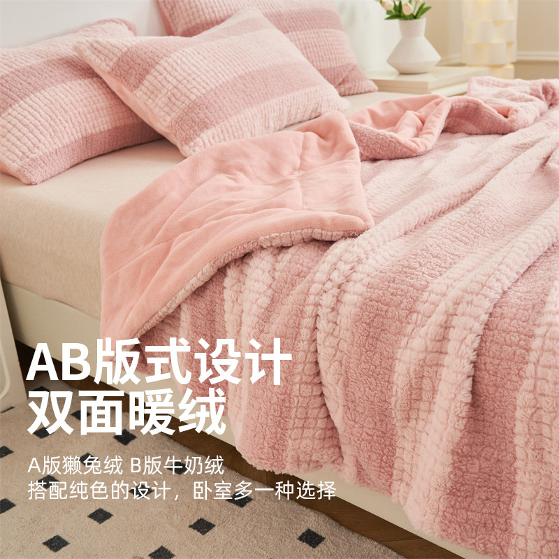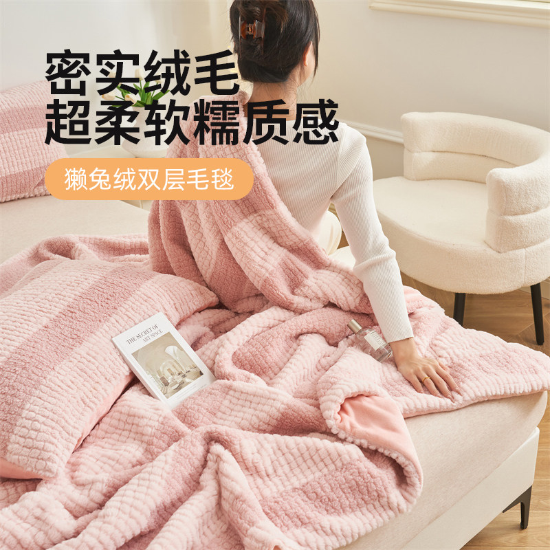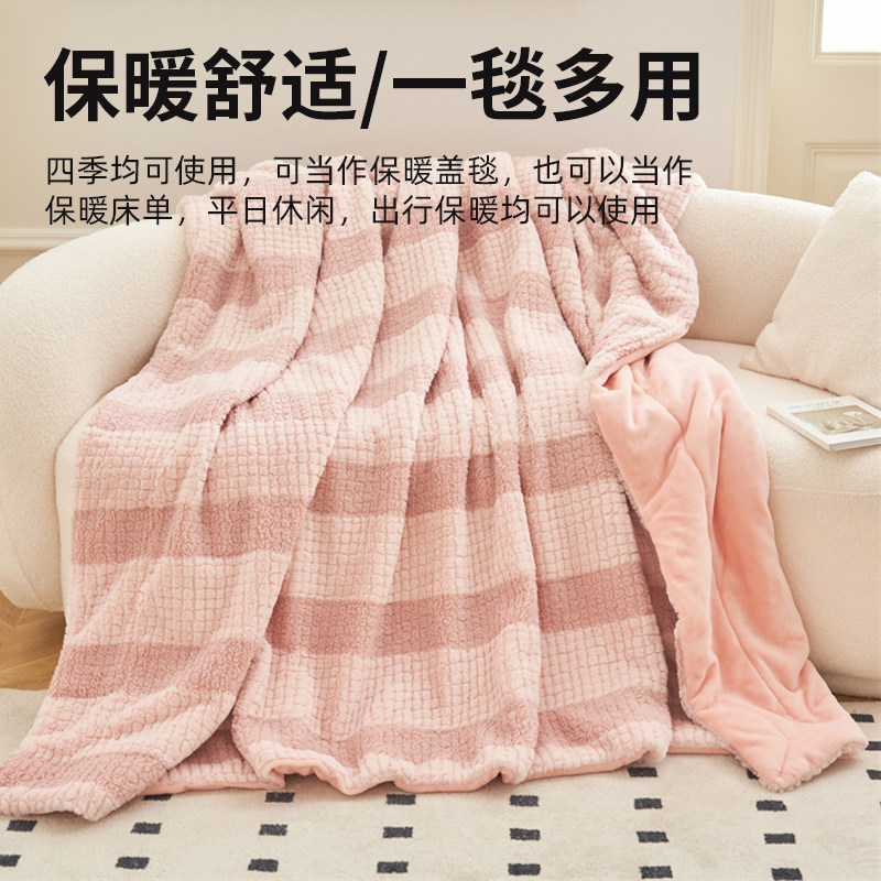 A类牛奶绒毛毯冬季盖毯可机洗单人宿舍毯披肩午睡毯双面绒床单厚