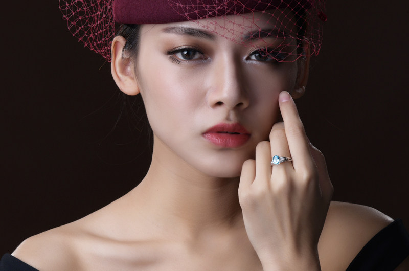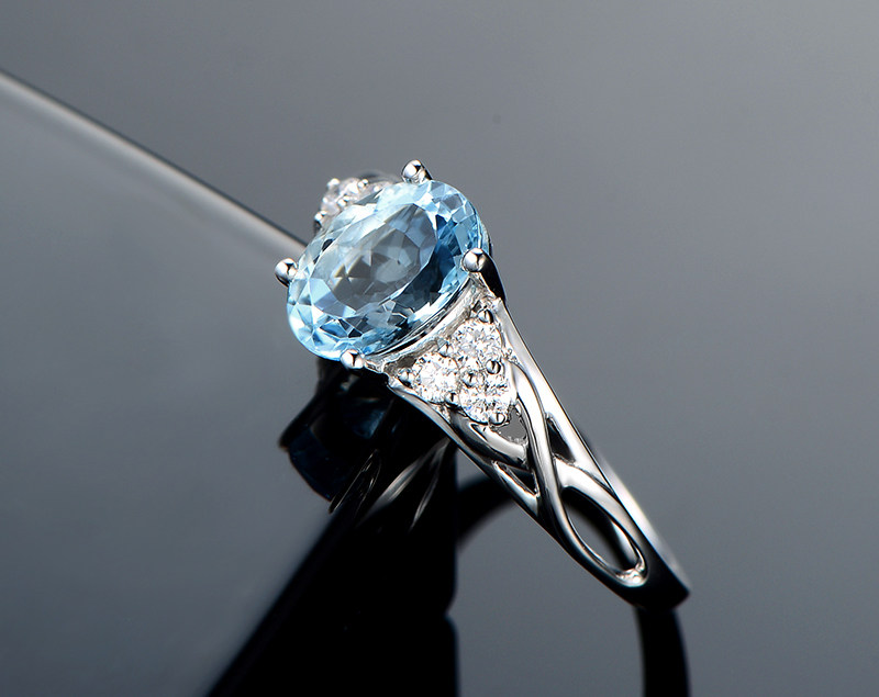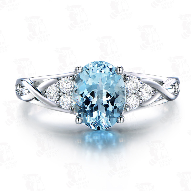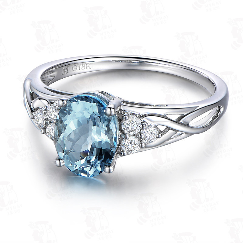 米莱珠宝 1.3克拉天然海蓝宝戒指女款18K金镶嵌钻石彩色宝石定制
