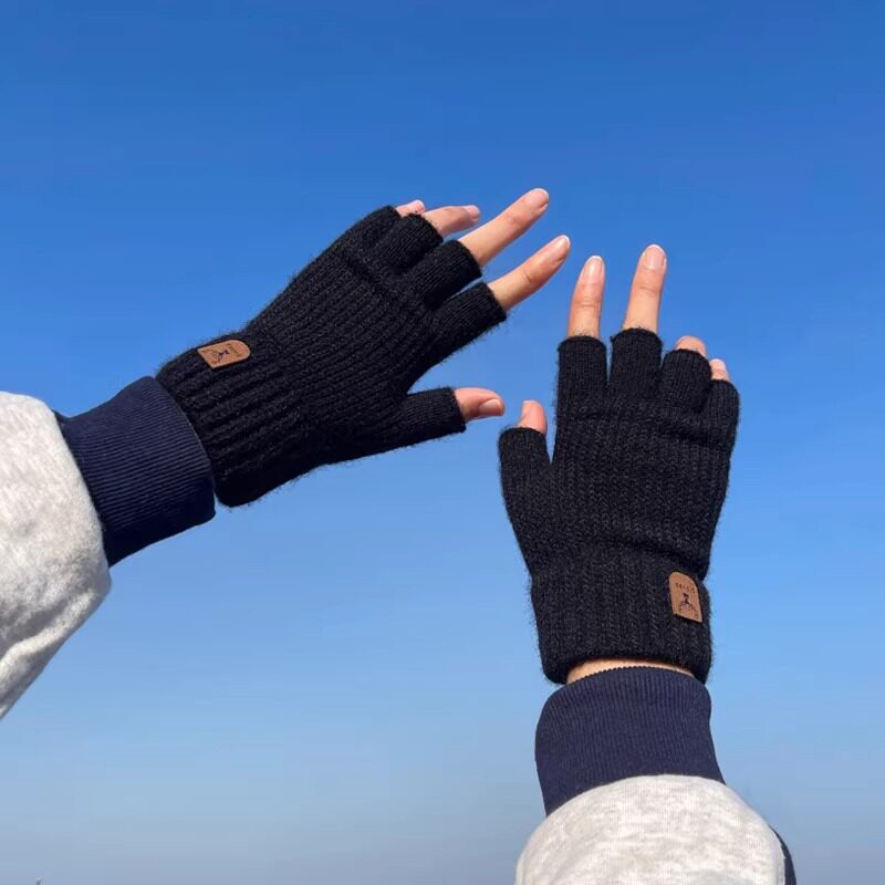 半指手套男士冬天保暖加绒加厚毛线露指学生骑行防风防寒骑车