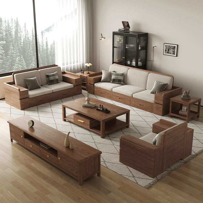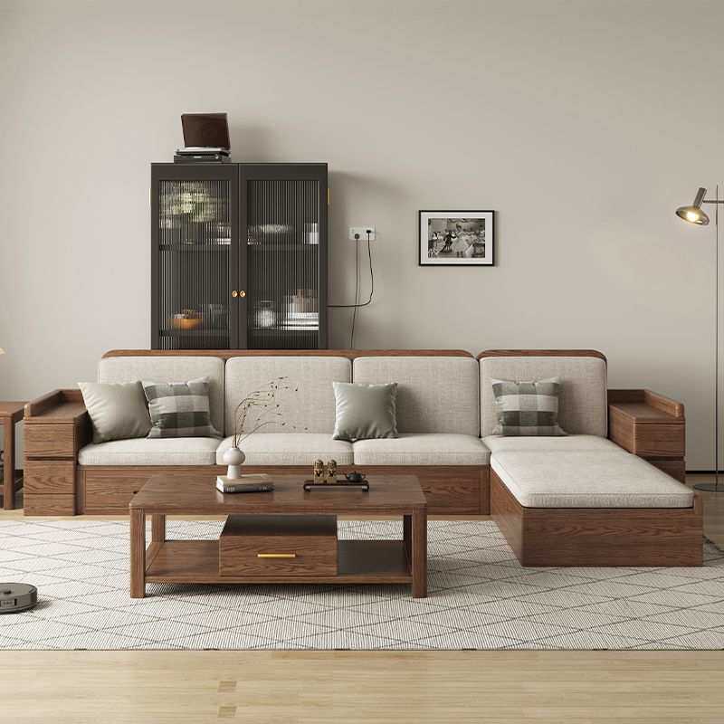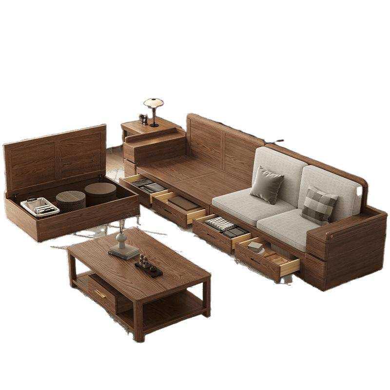 北欧白蜡木色实木沙发现代简约冬夏两用户型抽屉木质组合储物沙发