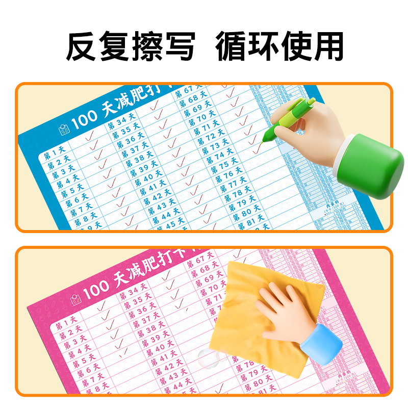 减肥计划打卡表挂图减肥励志自律记录墙贴监督日历计划表