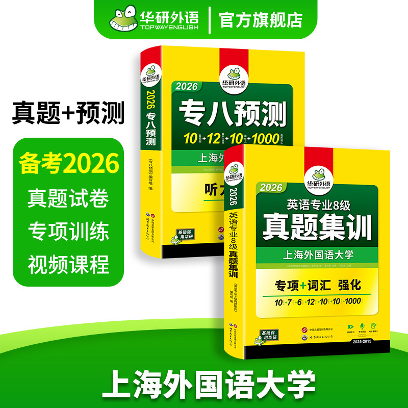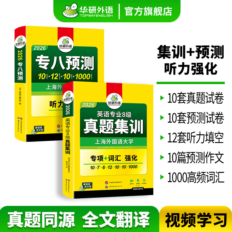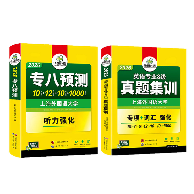 华研外语英语专八真题集训预测卷备考2026专业八级历年真题考试卷听力阅读理解写作文翻译改错词汇预测模拟专项训练tem8级语法